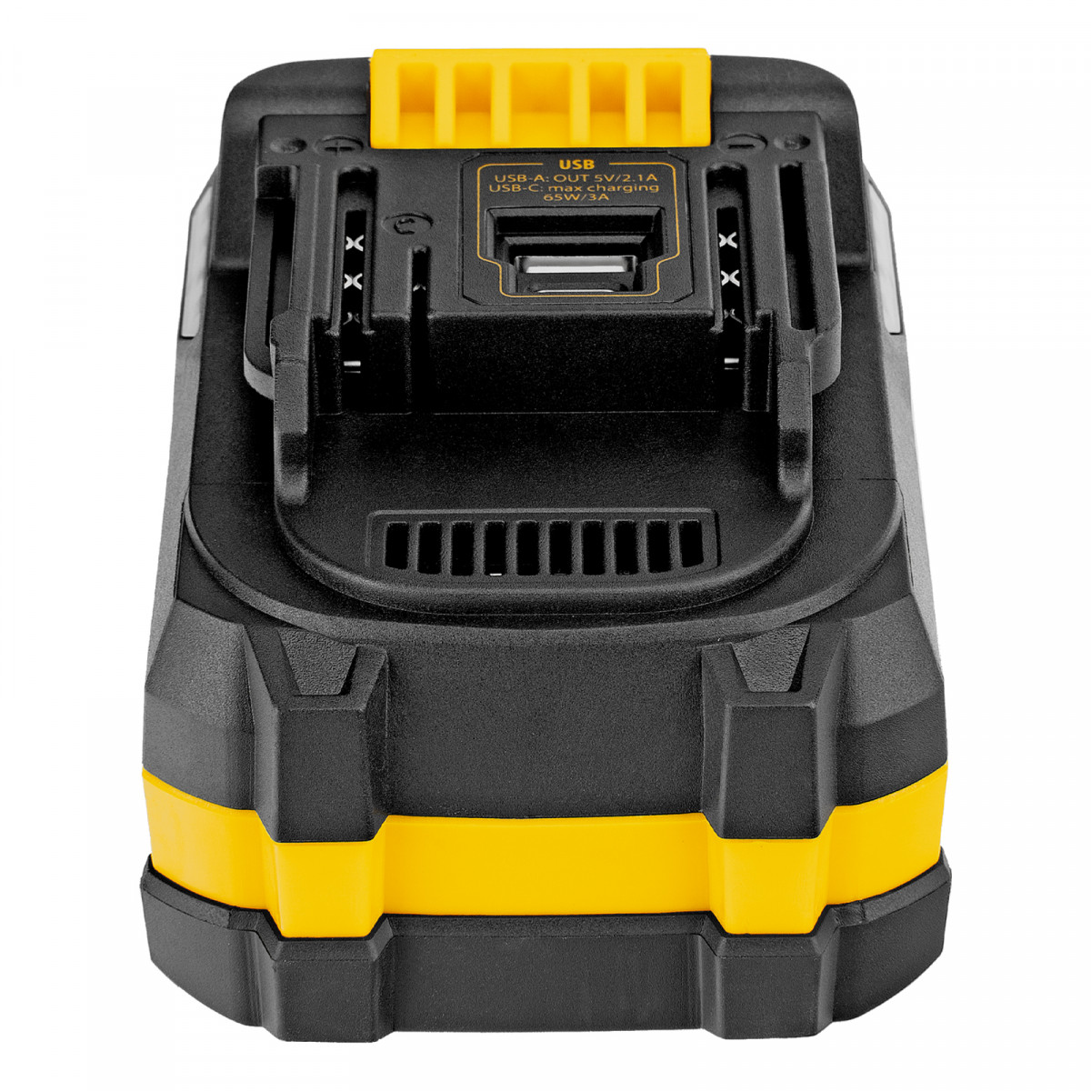Батарея Li-Ion Denzel BH-20-6.0 28446 номинальным напряжением 20 В и емкостью 6,0 А·ч обеспечивает работоспособность аккумуляторного инструмента. Подходит для всех инструментов единой платформы Denzel Power System 20V. Также может использоваться в качестве зарядного устройства для мобильных устройств, поддерживающих зарядку от разъемов USB 3.0 (USB-A) и USB Type-C.