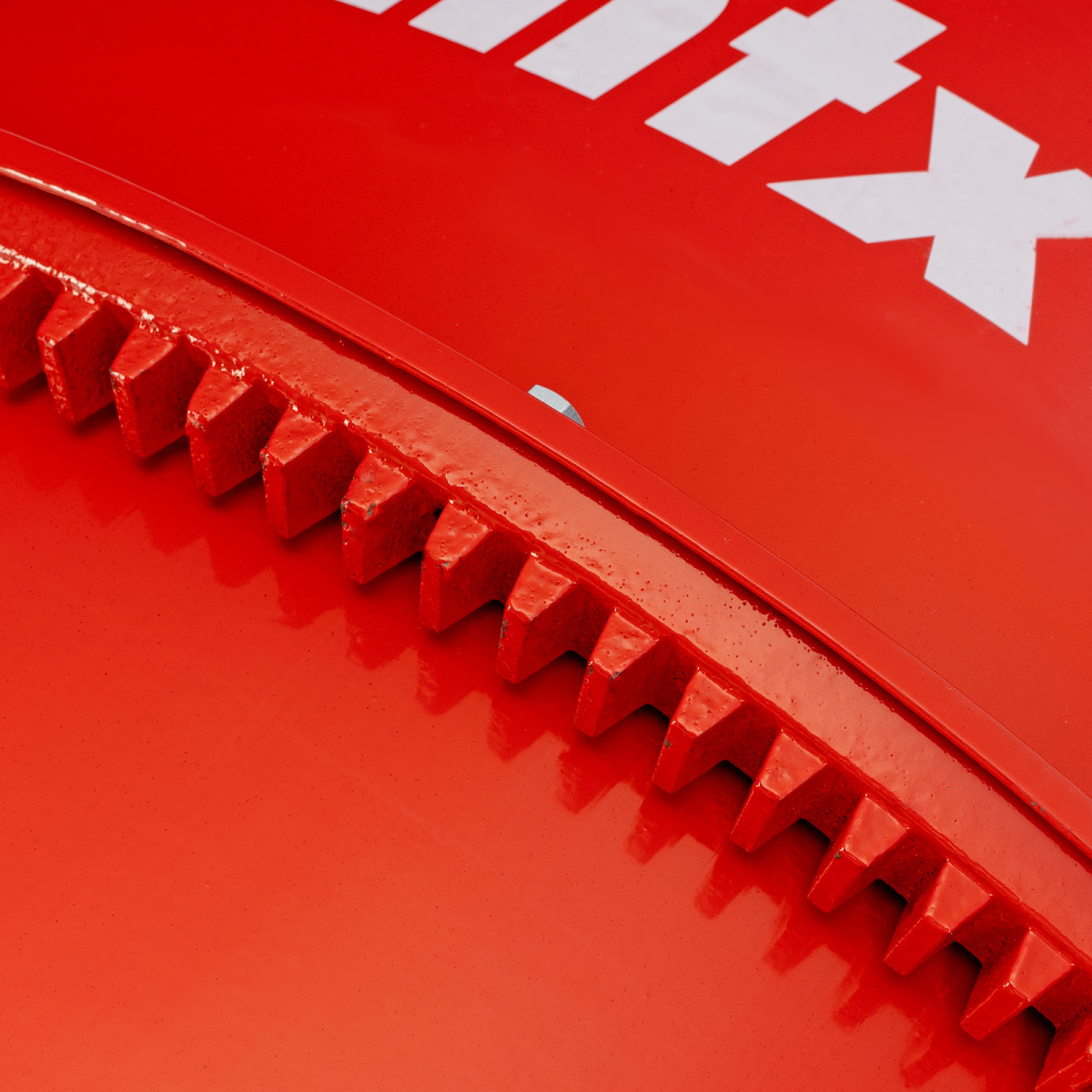 • Эффективное выполнение большого объема работ — венец и шестерня выполнены из чугуна, толщина стенок бака увеличена, широкий шкив со стальной запрессованной втулкой выдерживает высокие нагрузки.