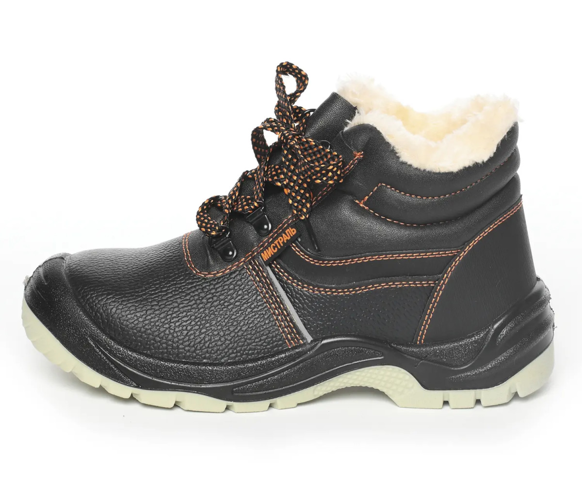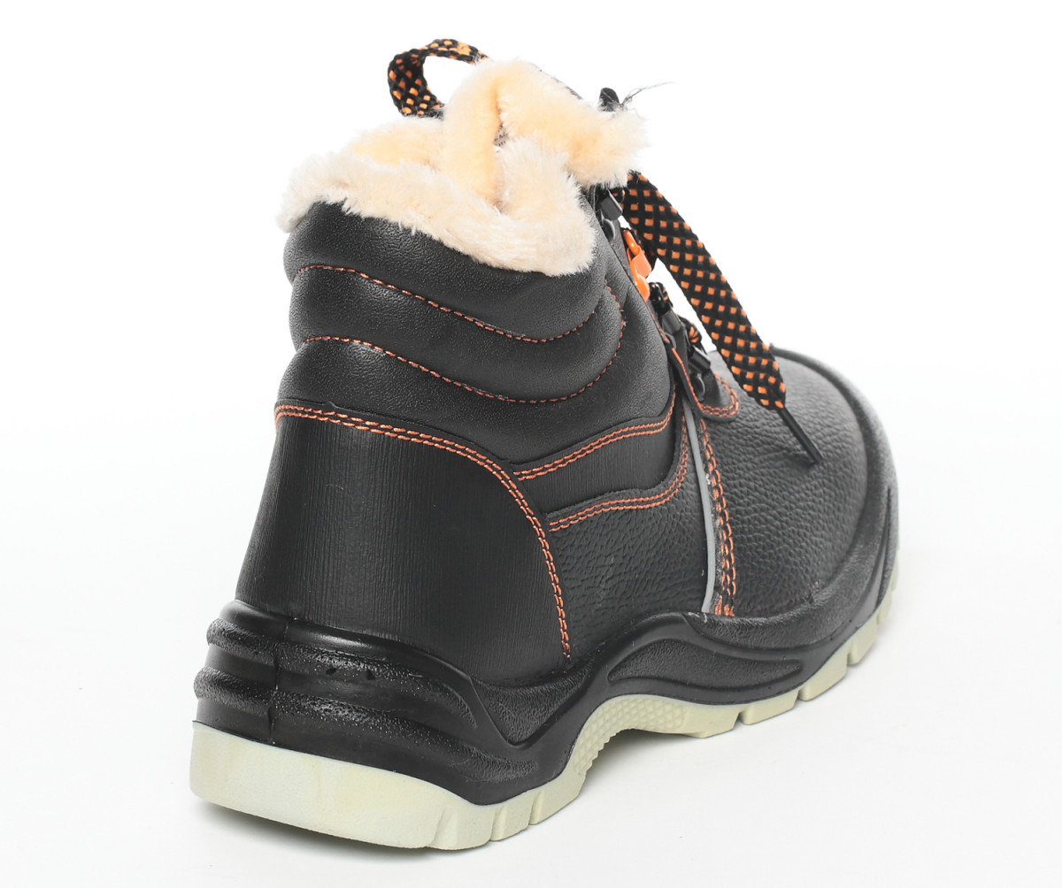 Верх обуви выполнен из натуральной кожи. Рабочая обувь из натуральной кожи долговечна, устойчива к повреждениям, комфортна в носке. Натуральная кожа обладает воздухопроницаемыми свойствами, не дает ногам потеть. Фиксируется обувь на ноге с помощью шнурков, которые плотно обхватывают стопу, улучшая комфорт ношения. Утеплитель из искусственного меха хорошо держит тепло, рассчитан на температурные режимы до -18 °C. Противоударный металлический подносок защищает от ударов в носочной части энергией 200 Дж. Металлическая антипрокольная стелька дополнительно защищает стопы ног от проколов, порезов, сильных ударов и прочих производственных травм.