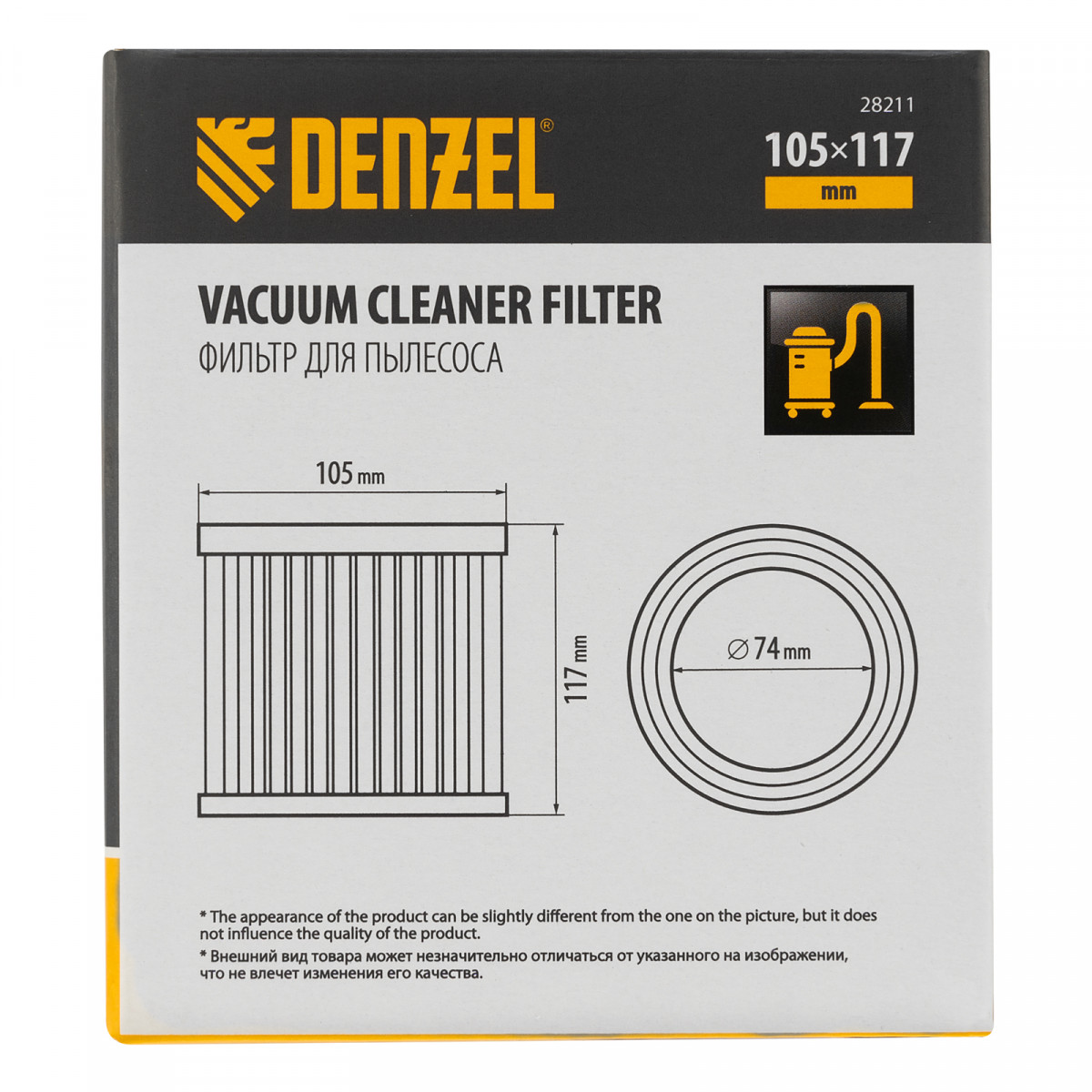 Каркасный складчатый HEPA-фильтр Denzel 28211 совместим со строительными пылесосами SVC15 (28201), LVC15 (28291). Устанавливается на корпус фильтра пылесоса и используется для проведения сухой уборки. Имеет класс фильтрации L, успешно справляется с частичками лака, краски, искусственного камня и т.п.