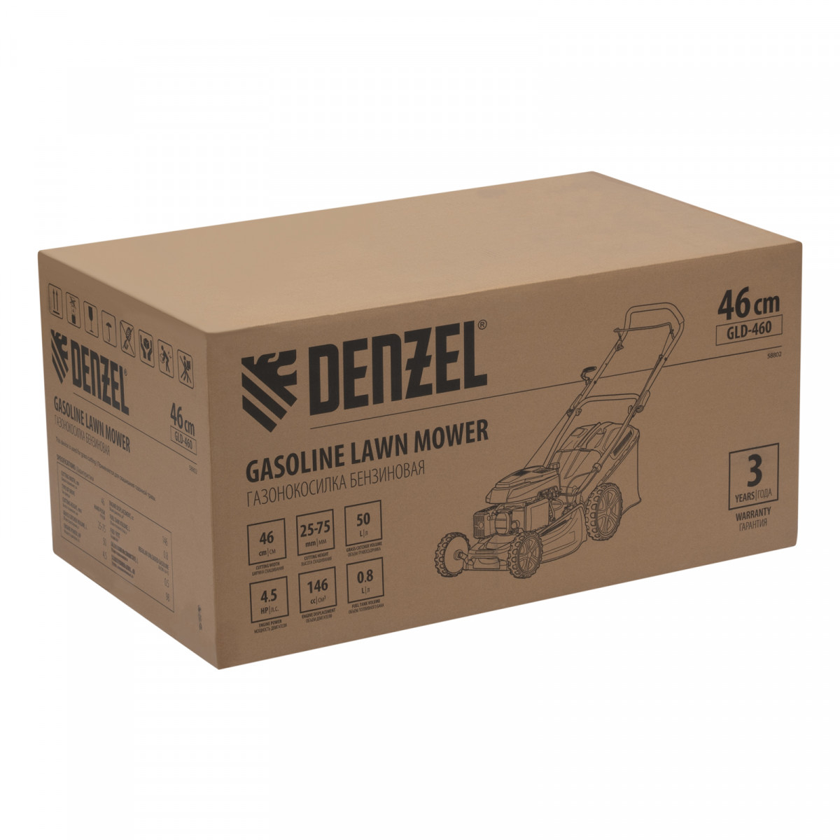 Газонокосилка бензиновая GLD-460, 146 куб.см, ширина 46 см, ручная, 7 уровней, травосборник 50 л Denzel