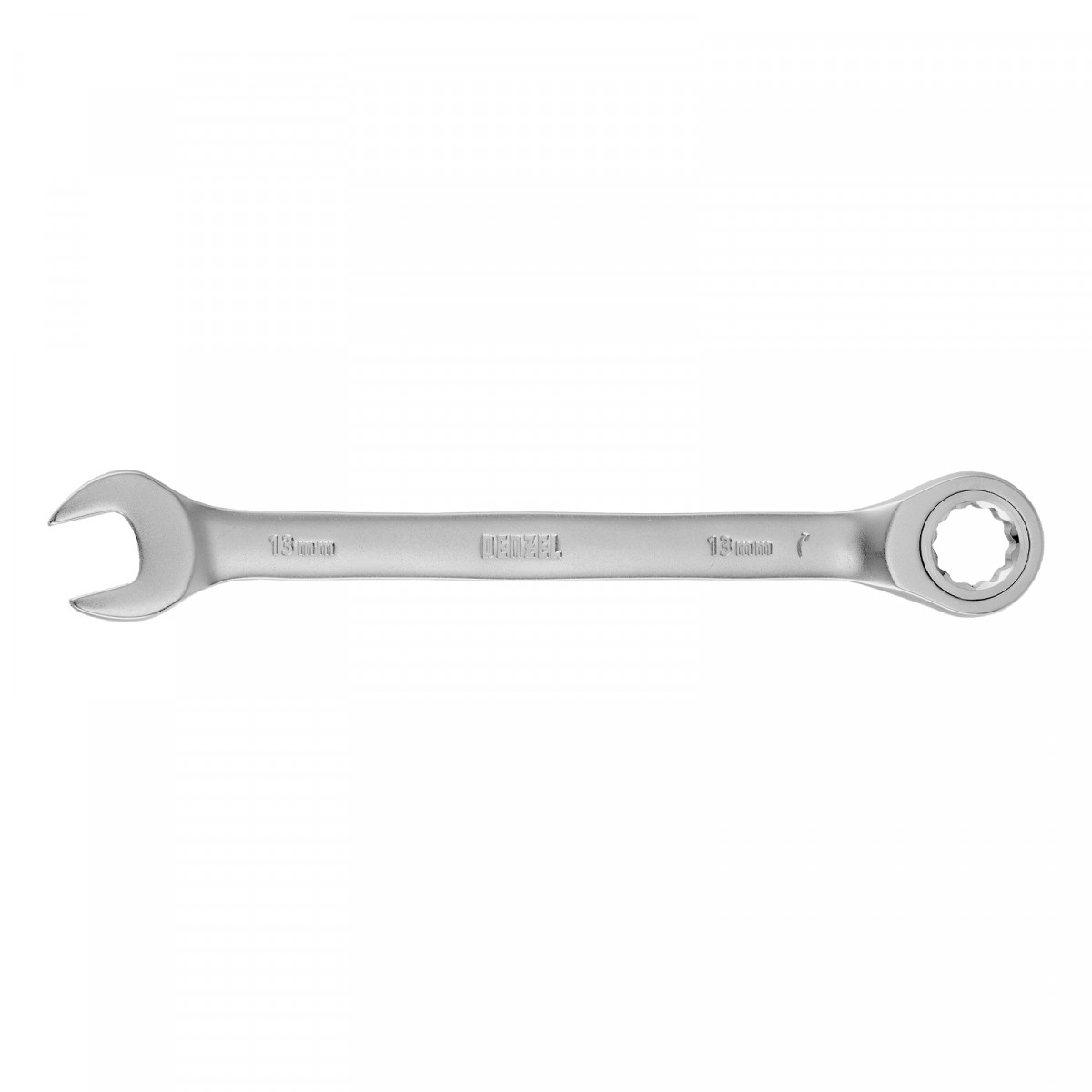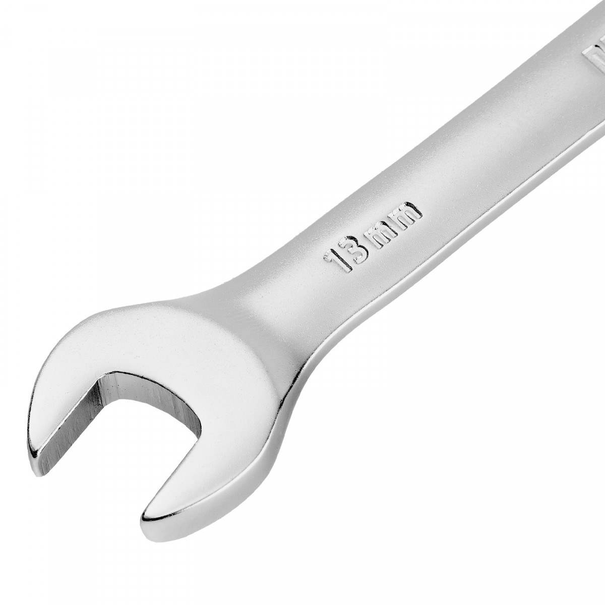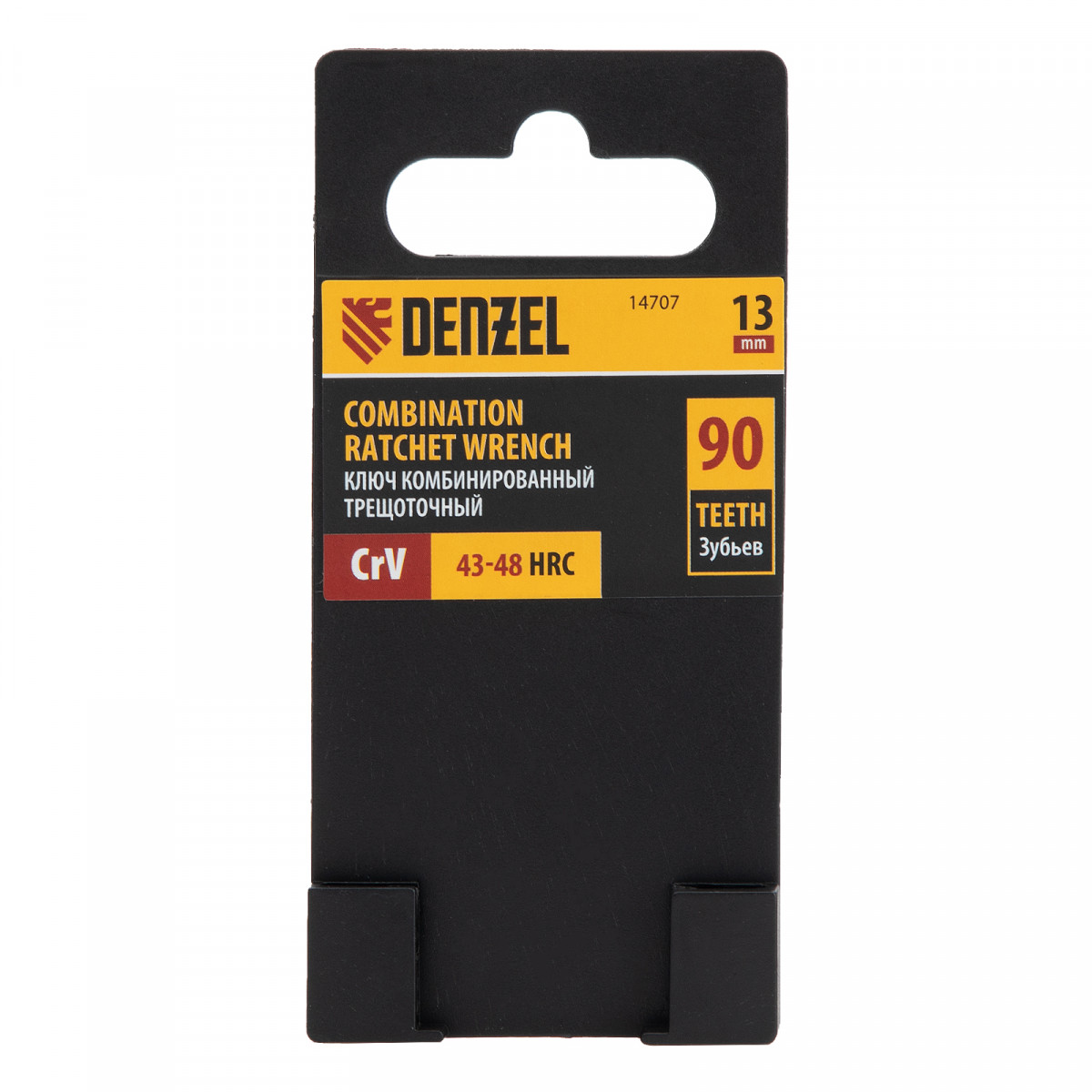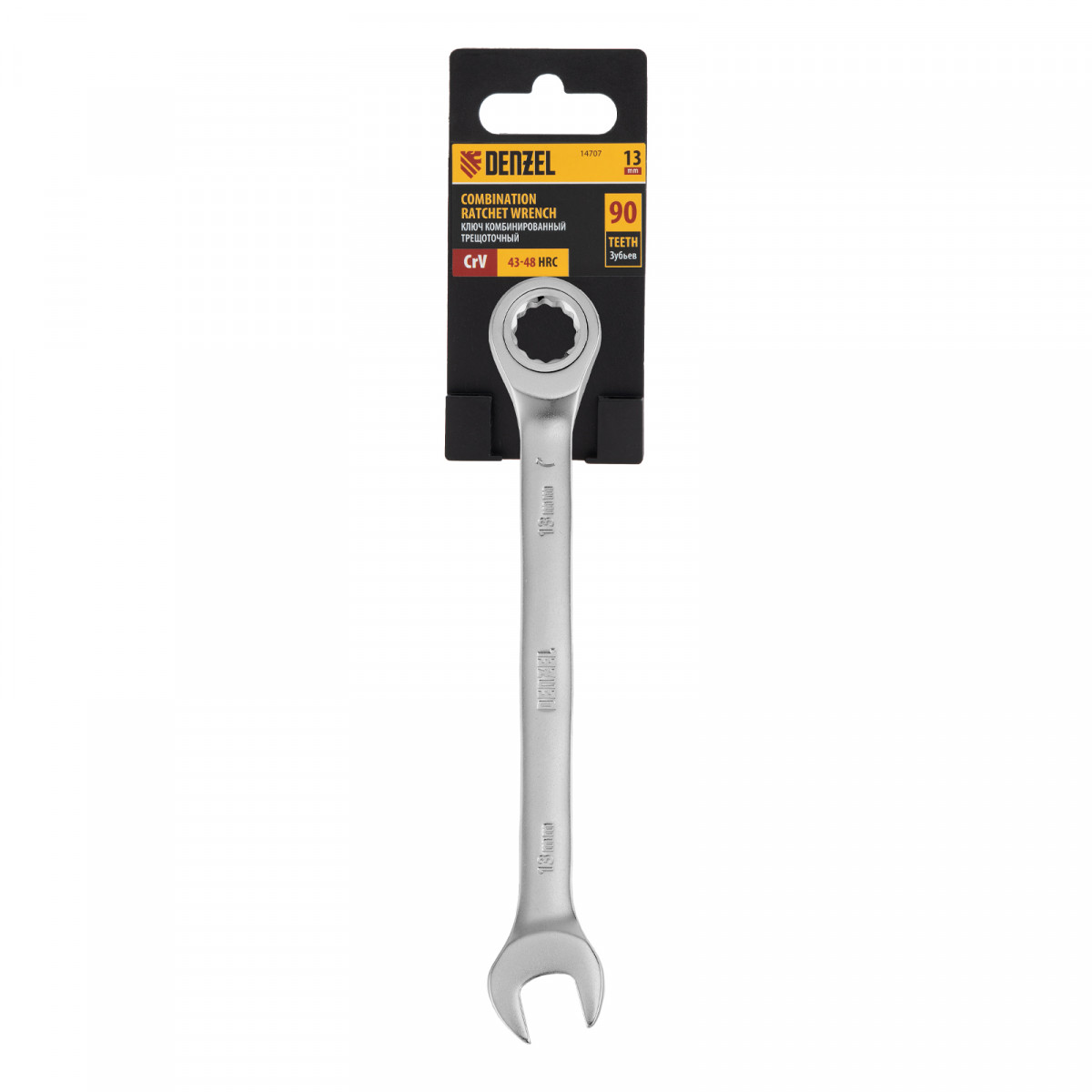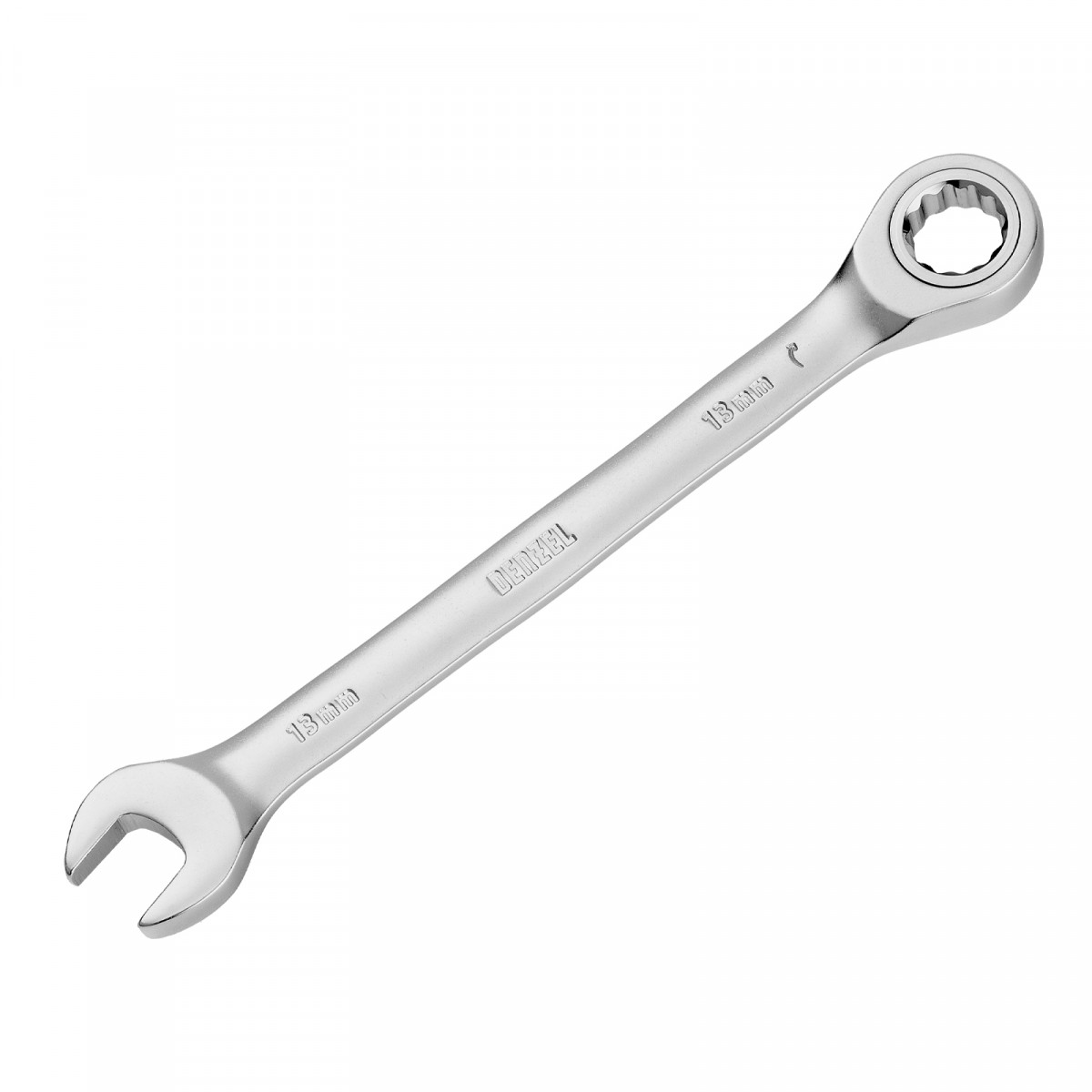 Ключ комбинированный трещоточный, 13 мм, CrV, матовый хром Denzel