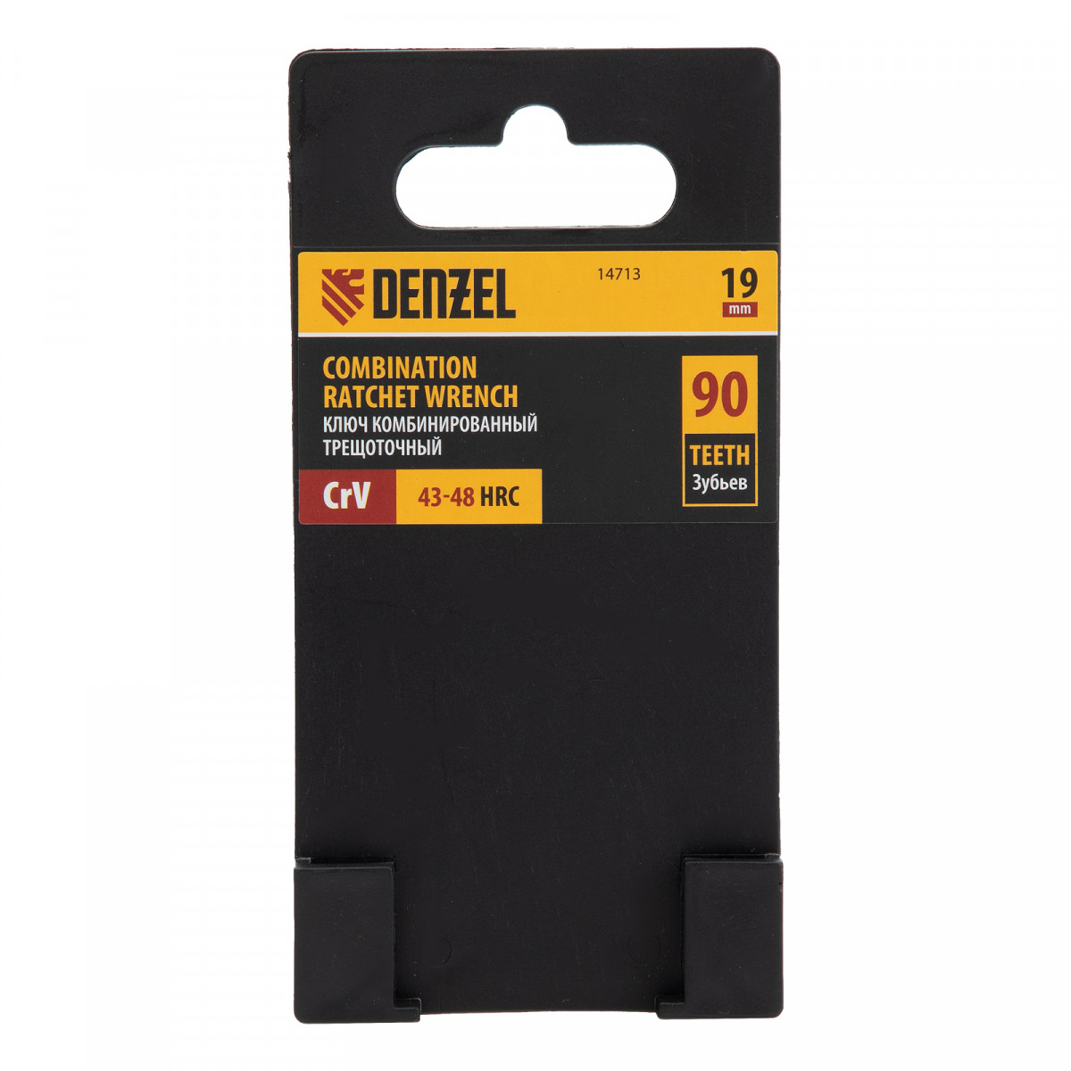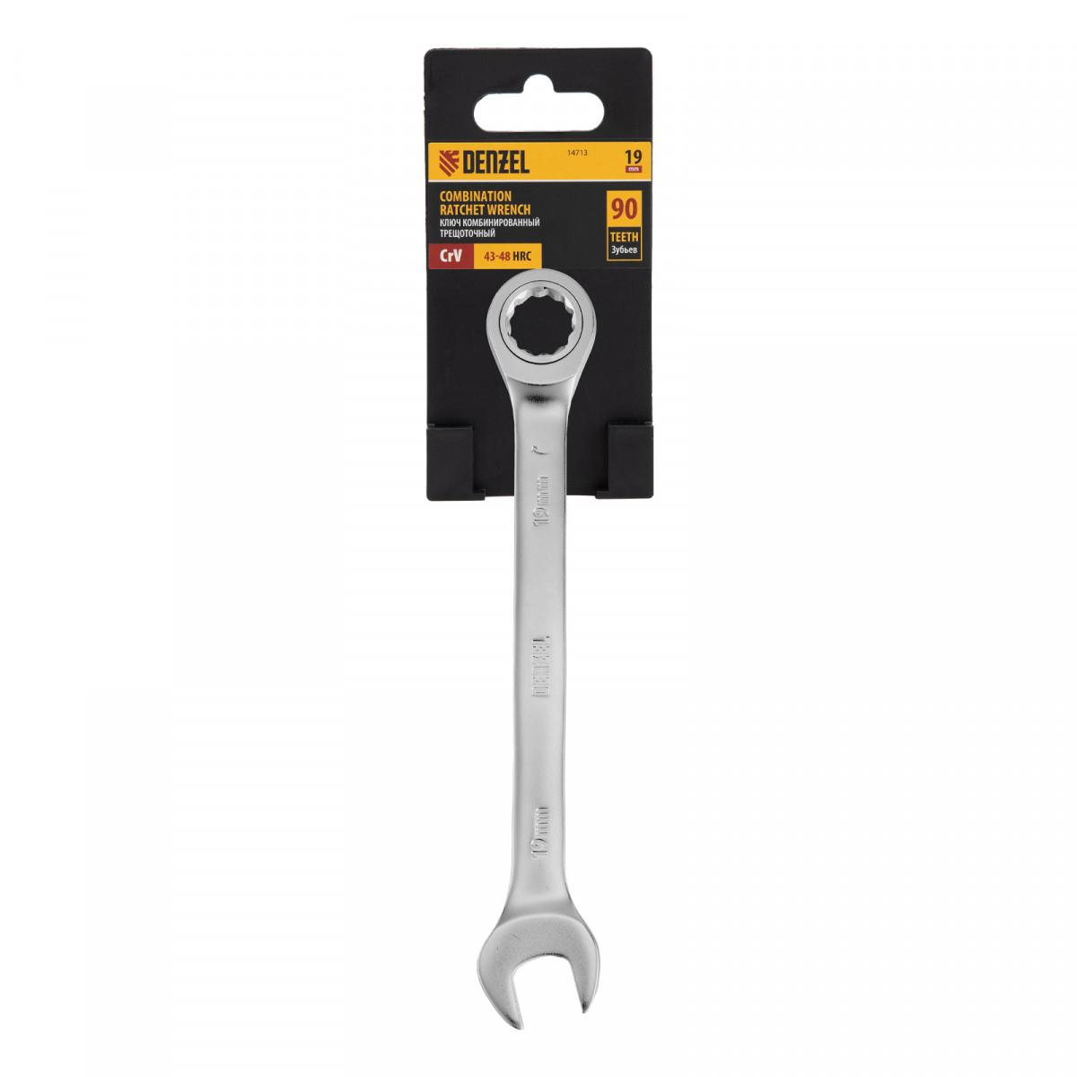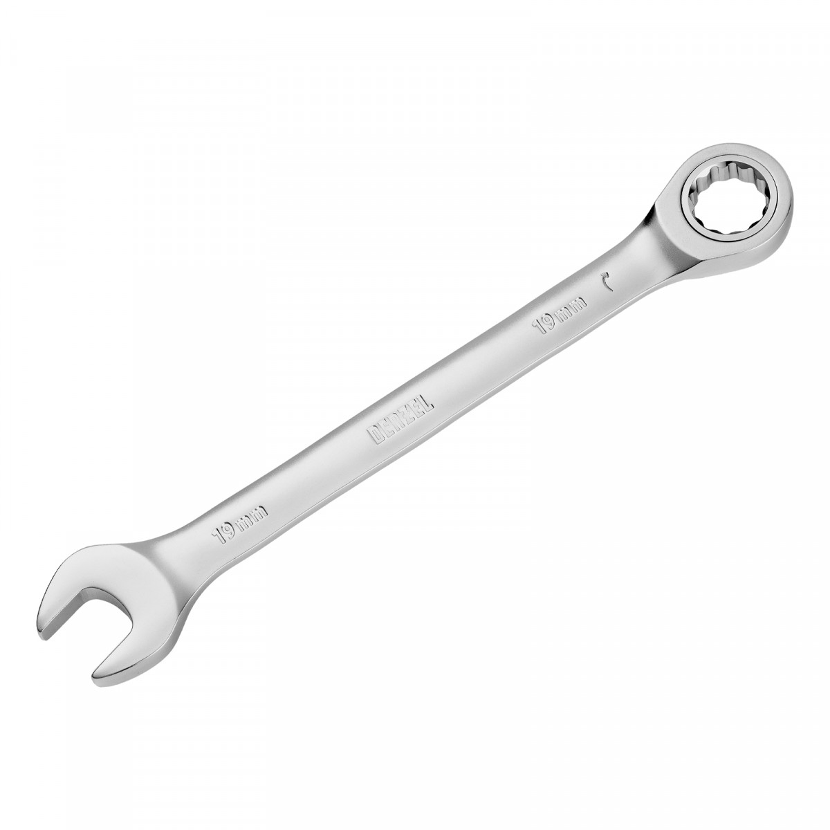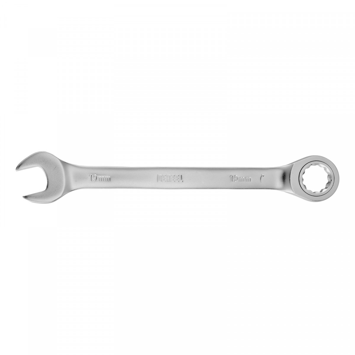 Ключ комбинированный трещоточный, 19 мм, CrV, матовый хром Denzel