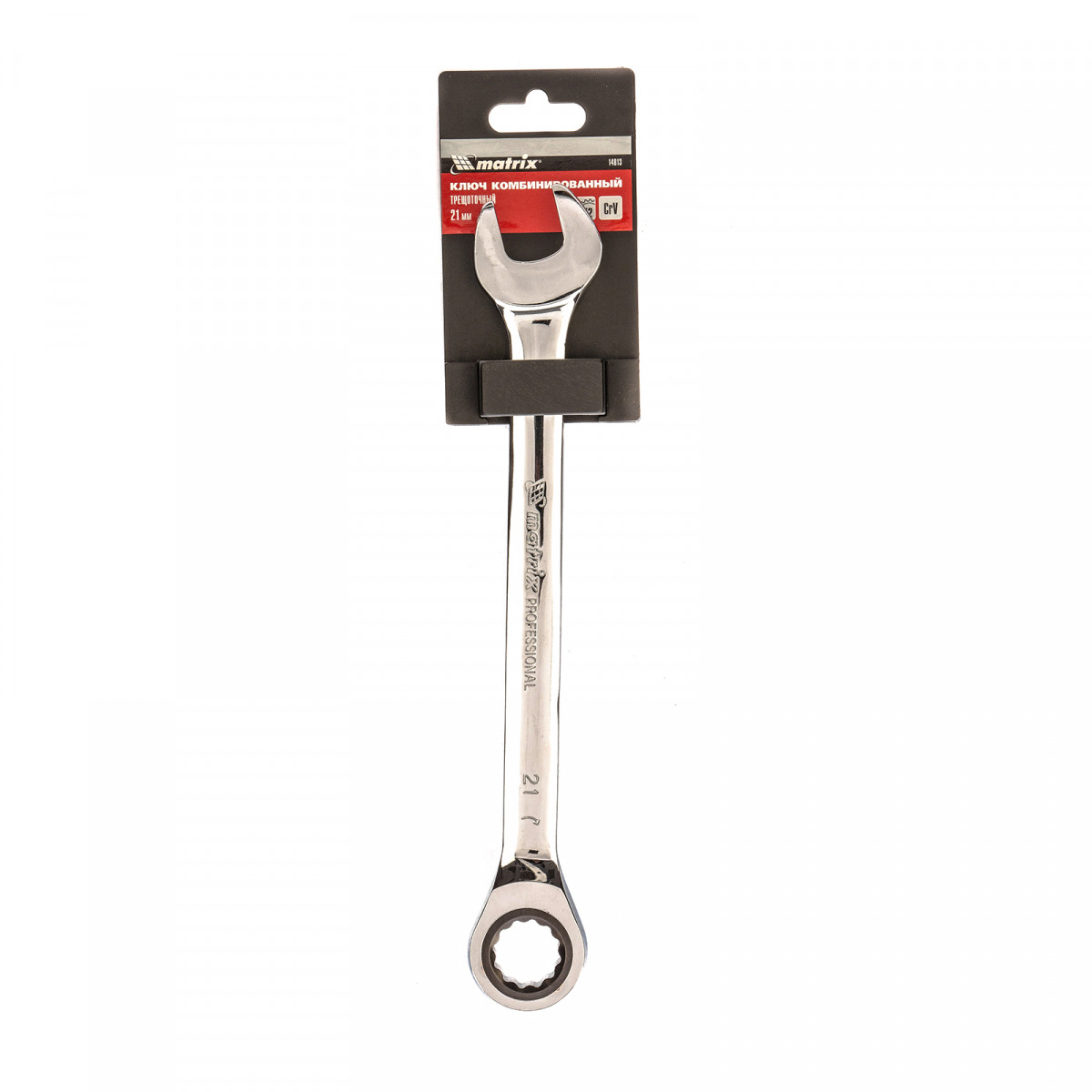 Ключ комбинированный трещоточный, 21 мм, CrV, зеркальный хром Matrix
