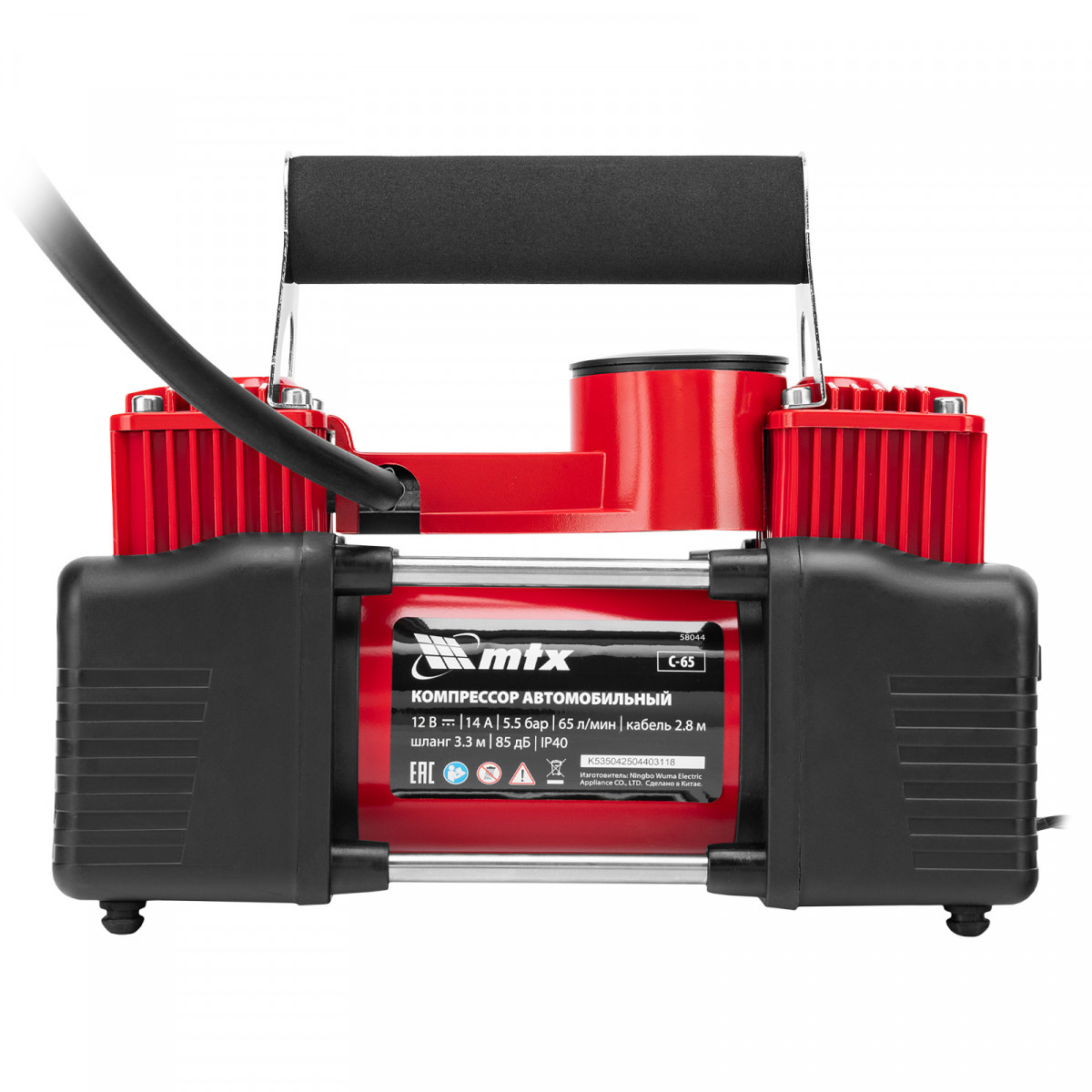 Компрессор автомобильный C-65, 12 В, 10 атм., 65 л/мин MTX