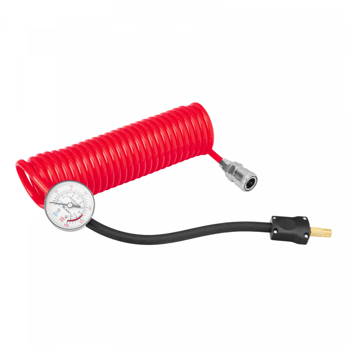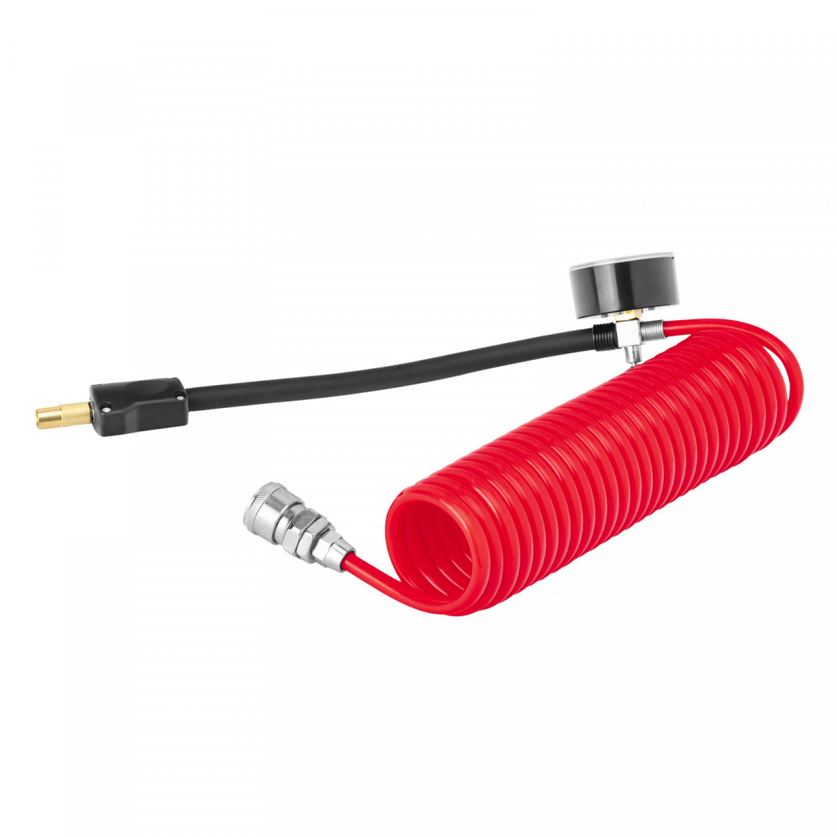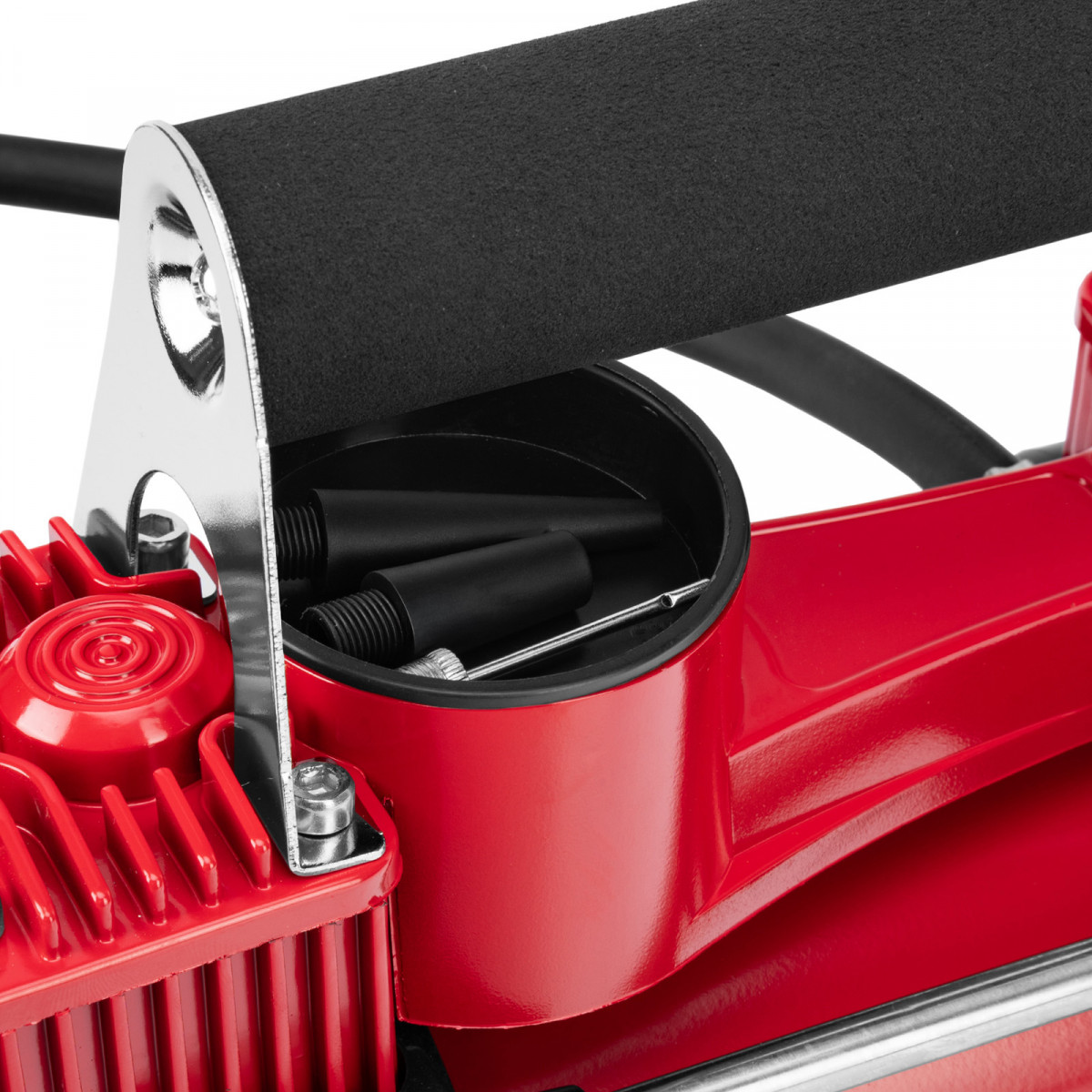 Удобный контроль давления — манометр расположен на шланге.|Защита от превышения давления — спускной клапан-дефлятор на конце шланга позволяет сбрасывать излишки воздуха, контролируя это по манометру.|Свободное передвижение без перестановки компрессора — длина шланга составляет 3,3 м, кабеля — 2,8 м.|Комфортное перемещение — компрессор весит всего 2,2 кг, в верхней части предусмотрена транспортировочная рукоятка.|Продуманная комплектация — компрессор, кабель с зажимами, шланг с манометром и набор насадок можно сложить в удобную сумку для хранения и транспортировки.