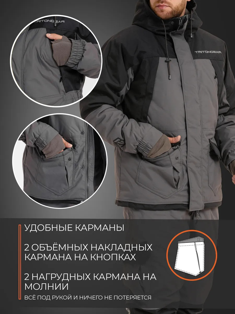 Зимний костюм STRONG -40 изготовлен из прочного материала Таслан, обеспечивающего защиту от холода и влаги в экстремальных условиях.
