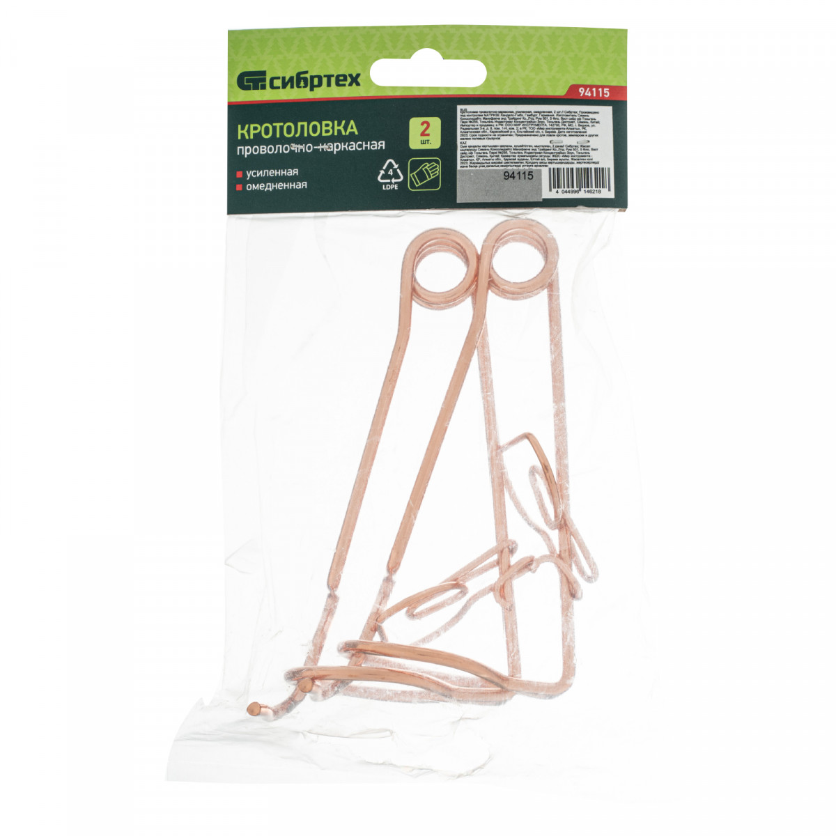 Омедненная проволочно-каркасная кротоловка Сибртех 94115 усиленной конструкции, 2 шт. в упаковке, предназначена для ловли кротов. С ее помощью можно избавиться от вредителей на дачном участке. Кротоловку легко скрыть в земле, чтобы животные ее не обнаружили. При этом она не заедает при попадании посторонних предметов.
