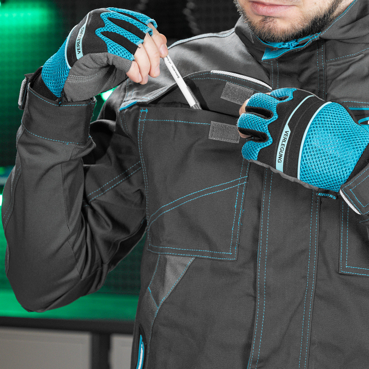 - Функциональность — спецодежда оснащена воротником-стойкой, светоотражающими элементами, дополнительным клапаном на центральной молнии для защиты от ветра и 5 удобными карманами для мелочей.