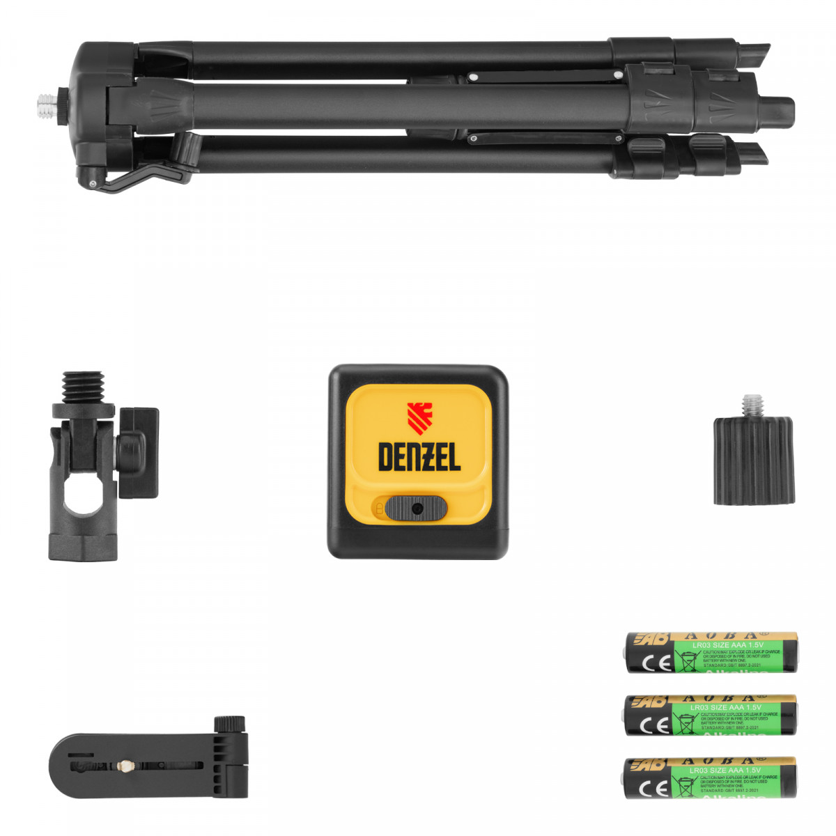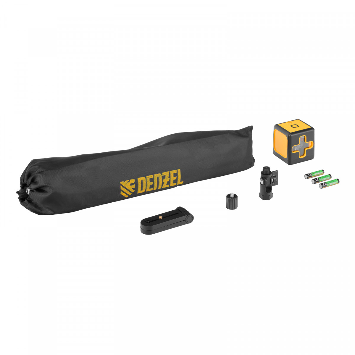 Лазерный уровень - 1 штМагнитный держатель - 1 штБатарейка ААА - 3 штАдаптер 5/8-1/4 - 1 штУгловой адаптер 5/8 - 1 штШтатив - 1 штСумка для штатива - 1 штИнструкция - 1 шт