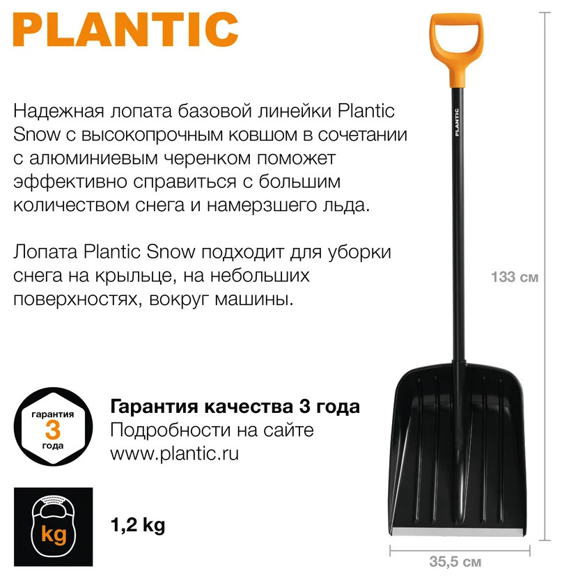 Лопата с алюминиевым черенком Plantic Snow 12004-01 подходит для уборки снега на небольших поверхностях - на крыльце или вокруг машины.