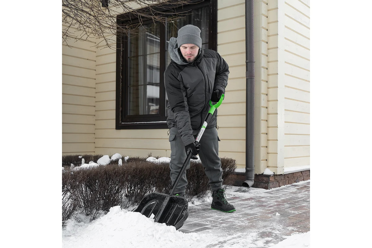 Ударопрочный поликарбонат обеспечивает долговечность и надежность лопаты при работе с снегом.