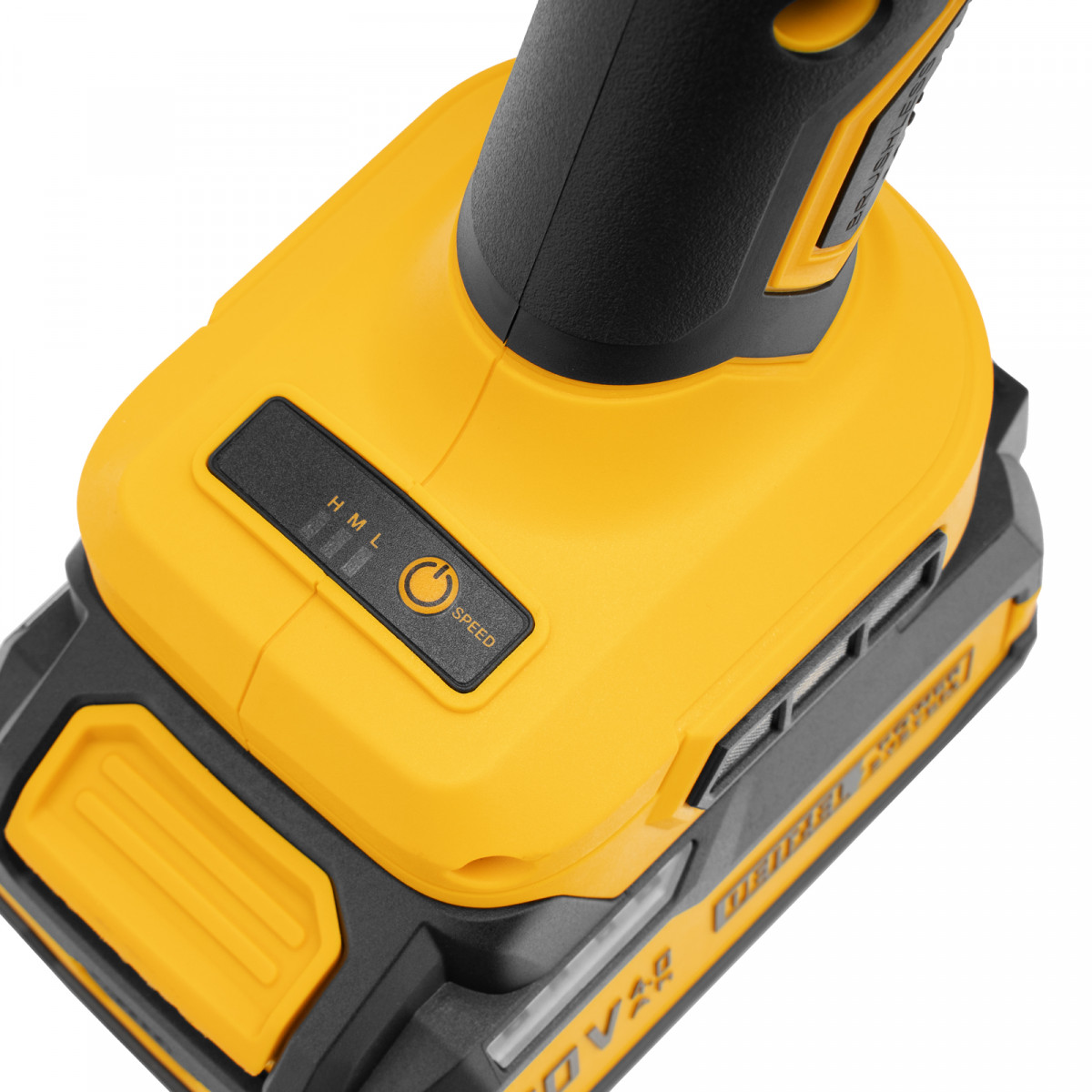 - Универсальность — аккумулятор Li-Ion емкостью 4 А·ч совместим со всеми инструментами единой платформы Denzel Power System 20V.