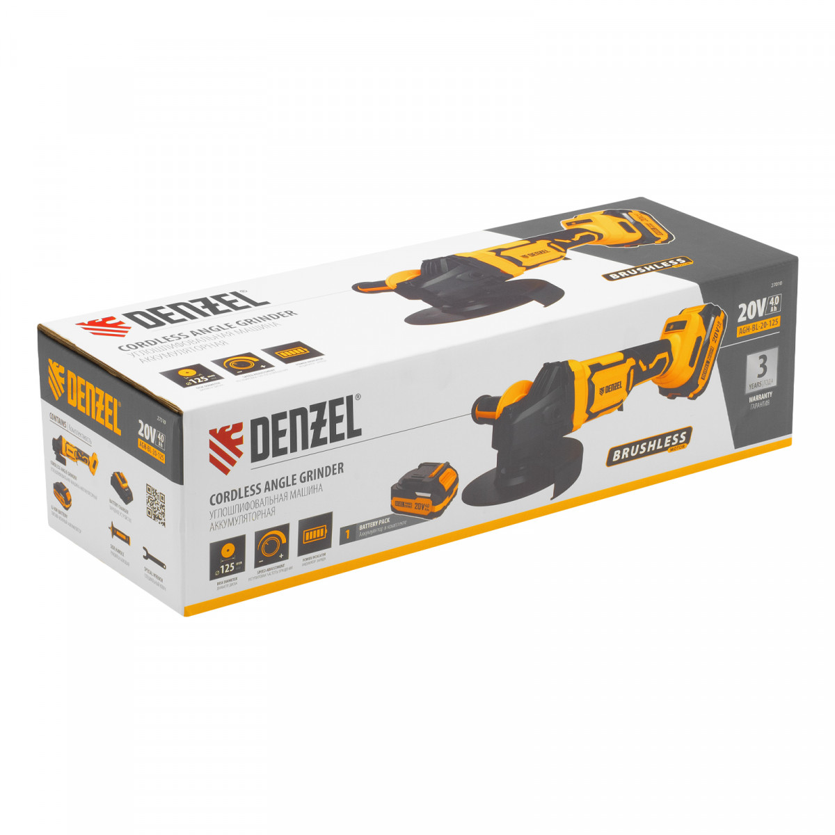 Машина шлифовальная угловая аккумуляторная бесщет. AGH-BL-20-125, Li-Ion, 20 В// Denzel