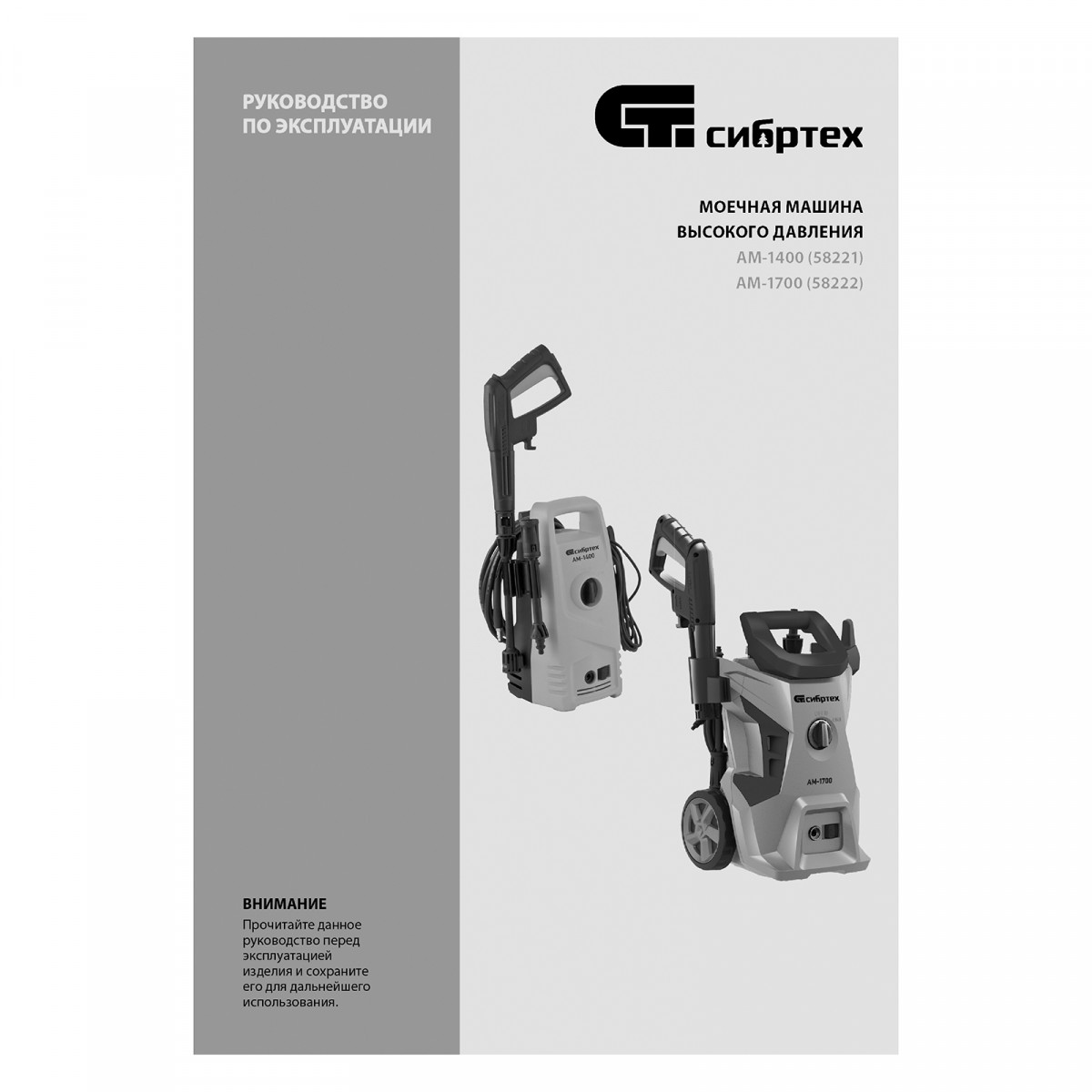 Моечная машина высокого давления АМ-1400, 1400 Вт, 105 бар, 330 л/ч, переносная Сибртех