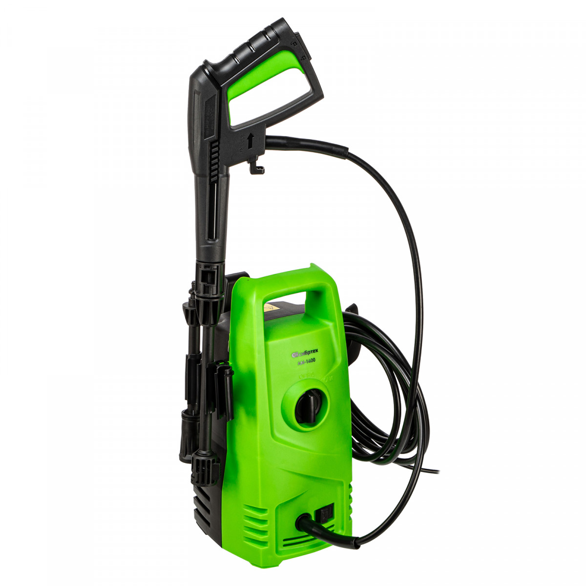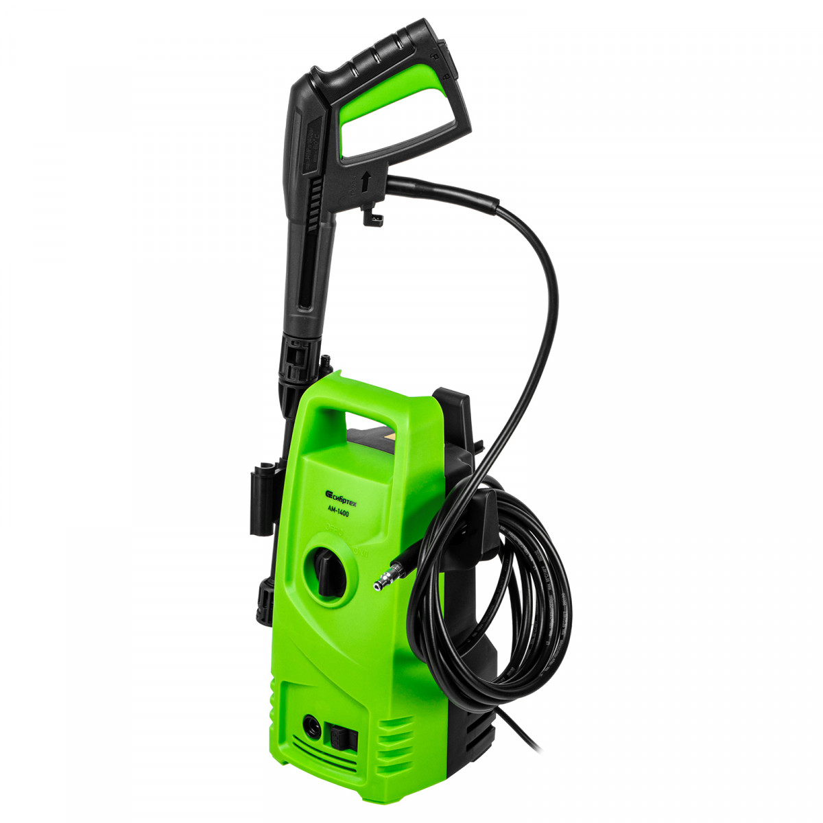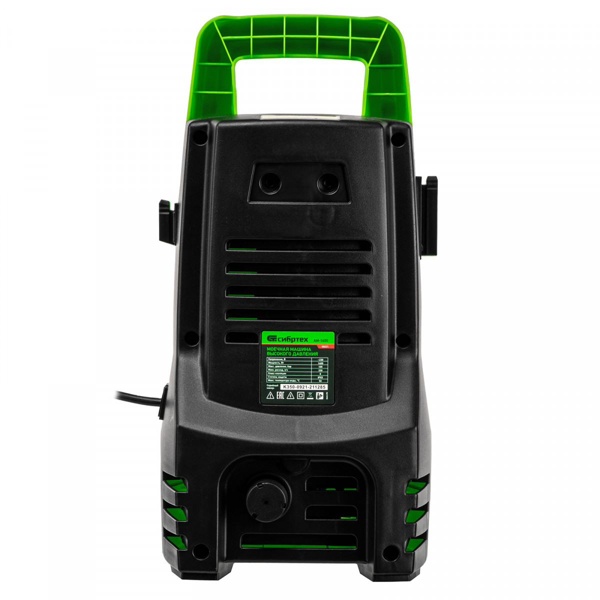 Моечная машина высокого давления Сибртех АМ-1400 58221 мощностью 1400 Вт работает, с максимальным давлением 105 бар, обеспечивает производительность 330 л/ч. Справится с такими задачами, как: бесконтактная очистка автомобиля, фасадов зданий, садовых дорожек, заборов, строительной техники, велосипедов. Она может не только забирать воду из водопровода, но и всасывать ее из резервуаров. Мощности 1,4 кВт и расхода воды 330 л в час достаточно для очищения поверхностей от старых масляных пятен и въевшейся грязи.
