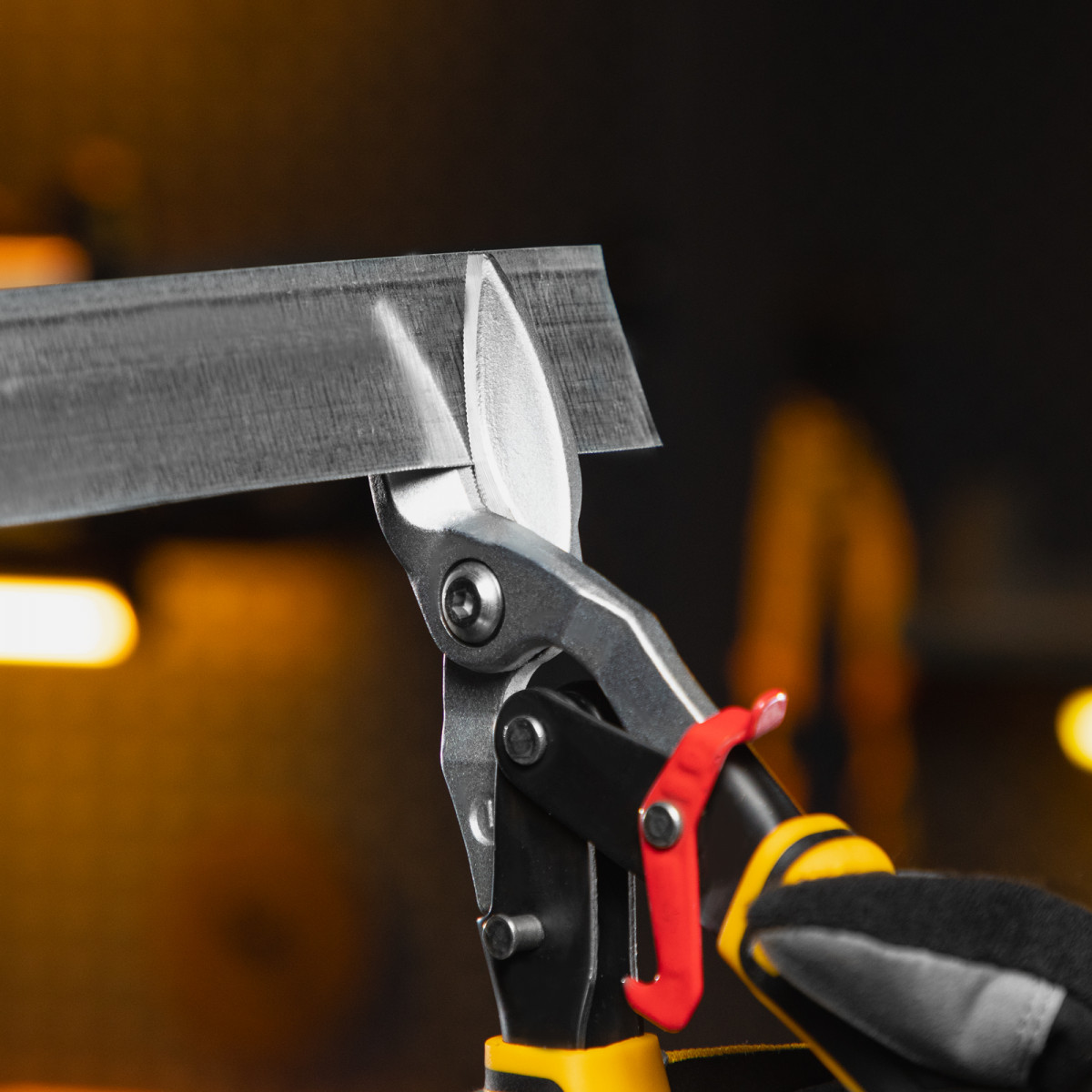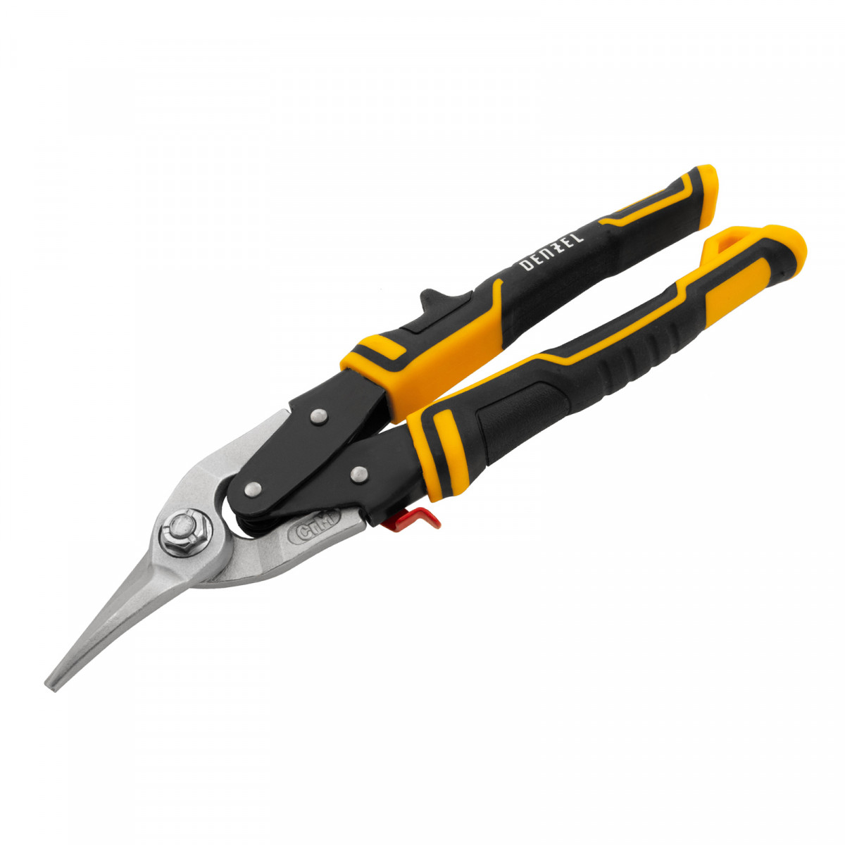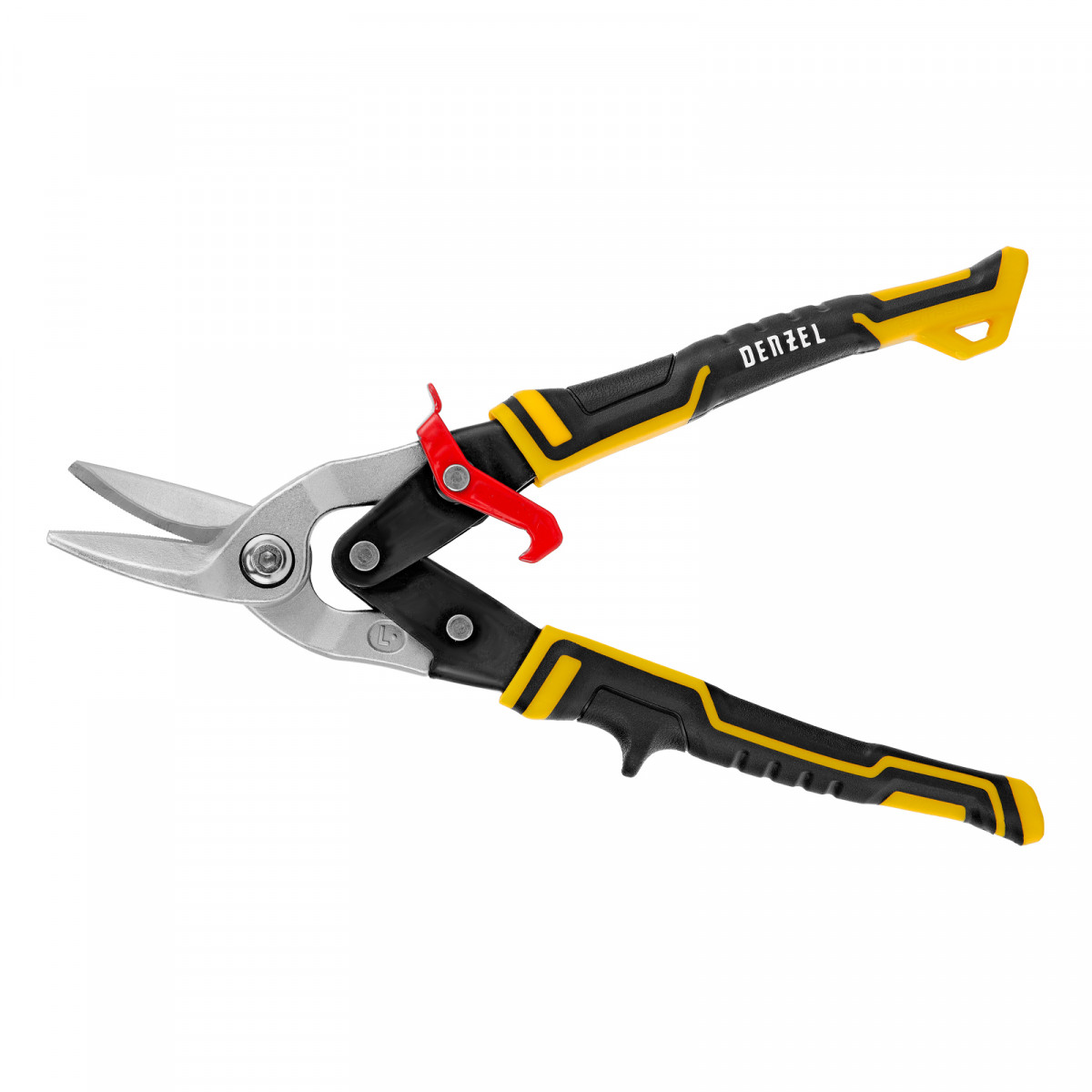 Ножницы по металлу, 270 мм, прямой и левый рез, сталь-СrMo, трехкомпонентные рукоятки Denzel