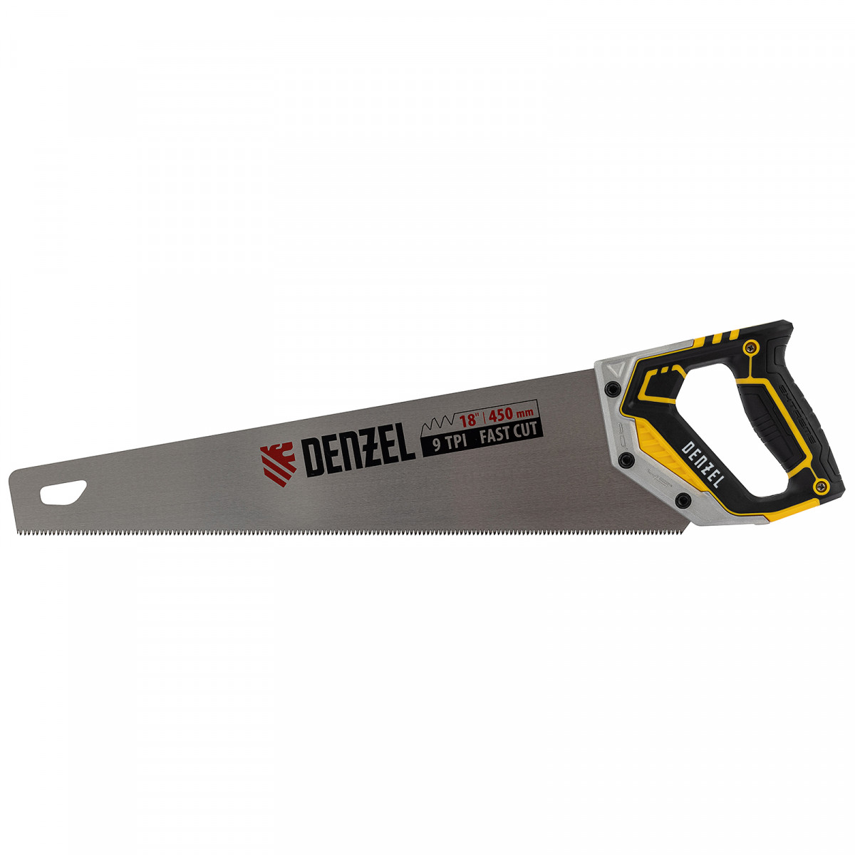 Ножовка по дереву, 450 мм, 9 TPI, зуб 3D, металлопластиковая рукоятка Denzel