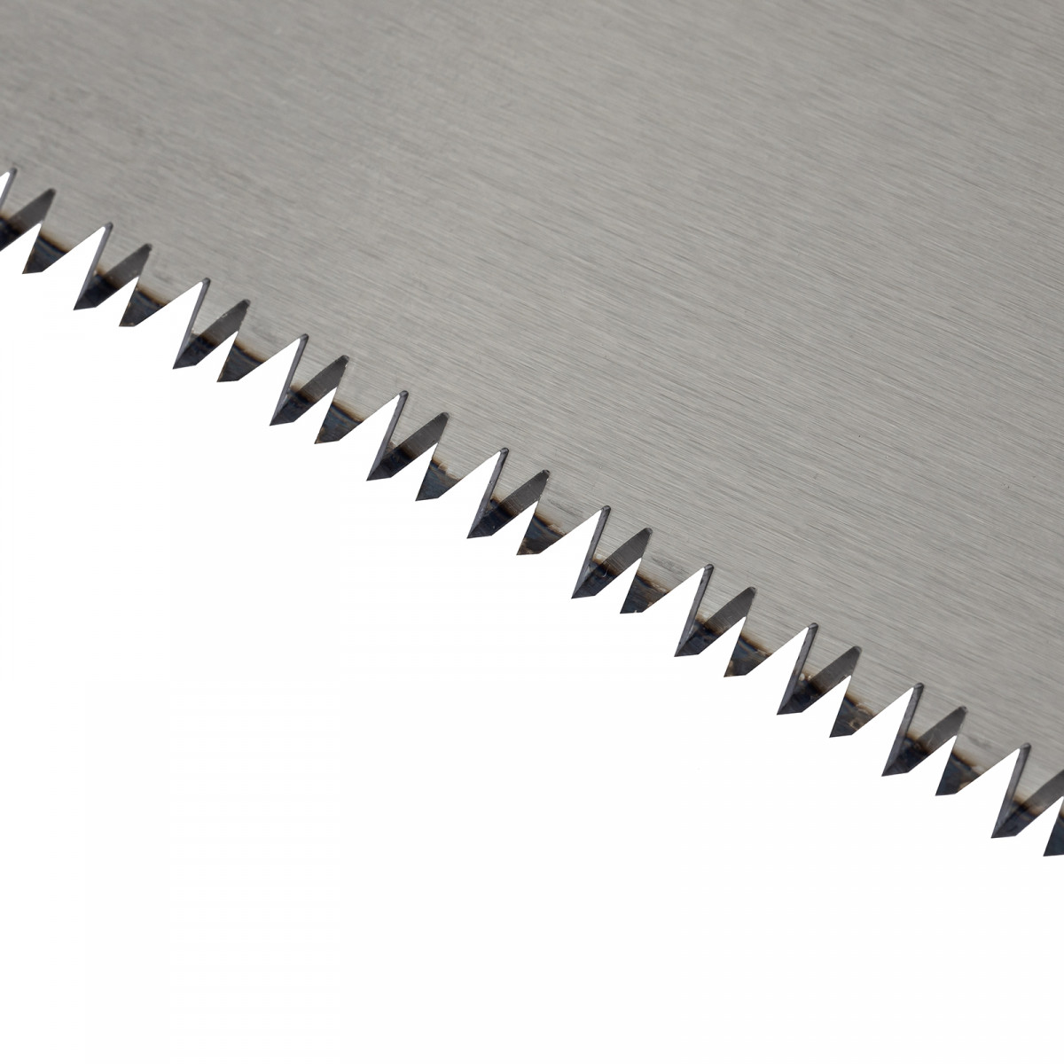 Ножовка по дереву Denzel 24148 длиной 500 мм, с зубьями с шагом 11 TPI и 3D-заточкой, с двухкомпонентной рукояткой, предназначена для продольной и поперечной распиловки заготовок из древесины, ДСП, ДВП, МДФ, ламината, а также из ПВХ (труб, панелей, коробов). Подходит для распиливания плинтусов, вагонки, деревянных профиле й. Мелкие зубья с шагом 11 TPI позволяют выполнять точный и чистый рез. Ножовка используется для проведения столярных работ в мастерской и на дачном участке.