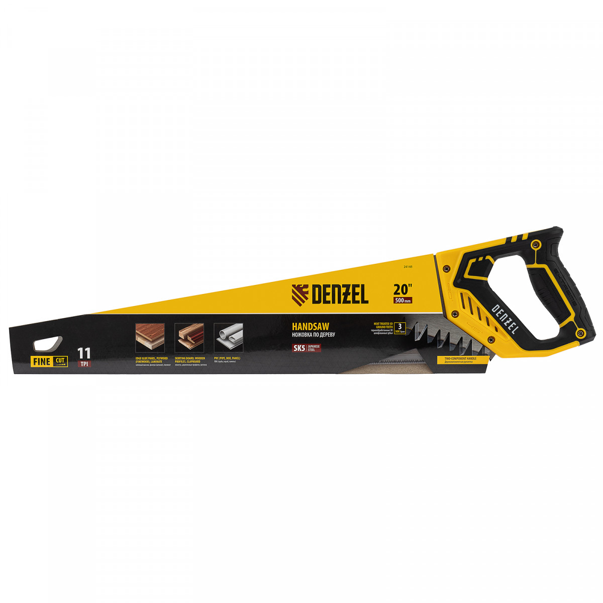 Ножовка по дереву, 500 мм, 11 TPI, зуб 3D, двухкомпонентная рукоятка Denzel