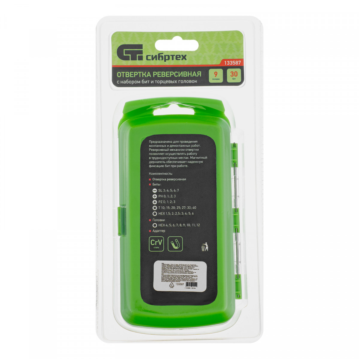 Реверсивная отвертка Сибртех 133587 с двухкомпонентной рукояткой поставляется с битами и торцевыми головками и входит в набор из 41 предмета. Используется для работы с резьбовым крепежом с профилем SL, PH, PZ, TORX или HEX. Благодаря магнитному держателю можно быстро менять насадки, что позволяет быстро решать большое количество разных задач. Отвертка с насадками незаменима во время проведения ремонтных, строительных, монтажных и демонтажных работ.