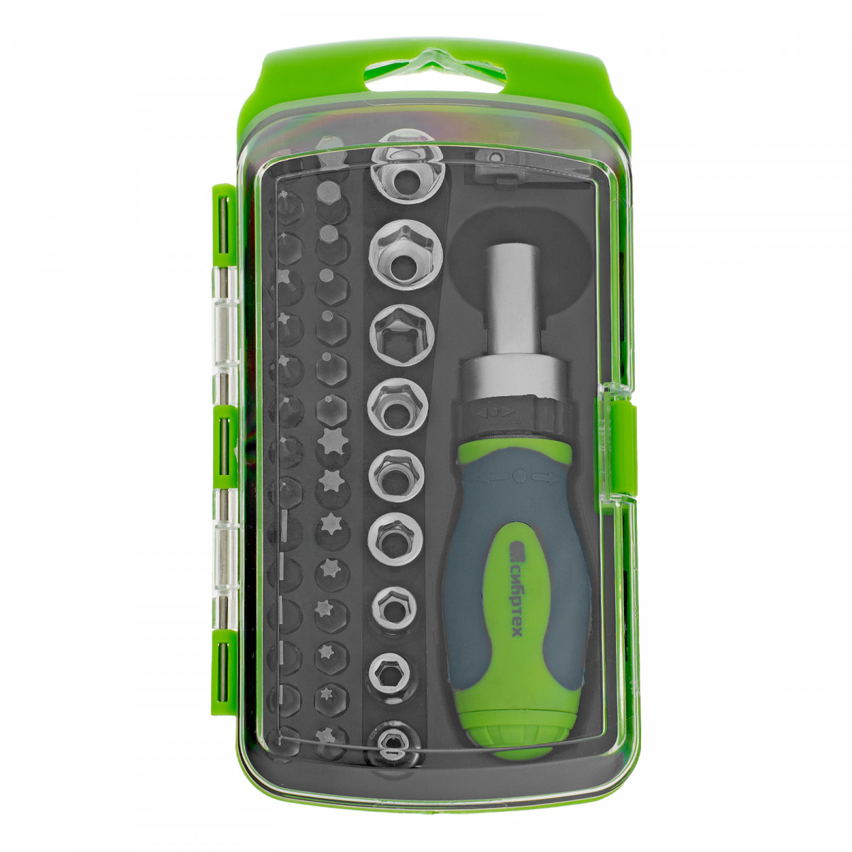 Отвертка ревер. + биты, 41 пред., PH+PZ+SL+H+T, CrV, 2к рукоятка Сибртех