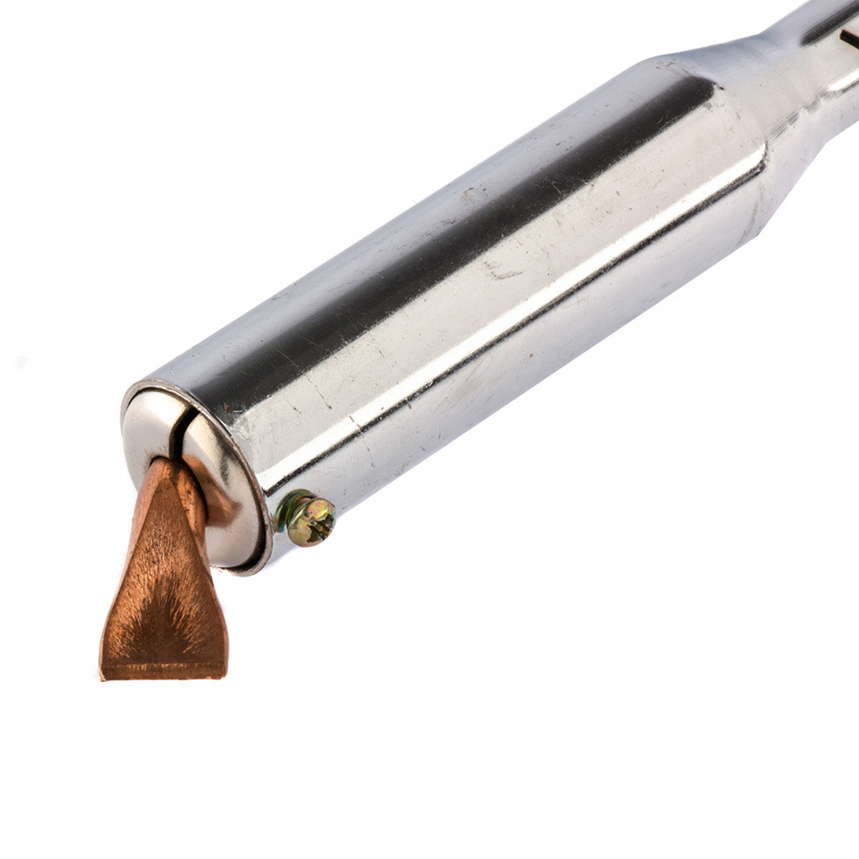 - Медное жало разогревается быстро и чистится легко, поэтому паяльник удобен в использовании.
