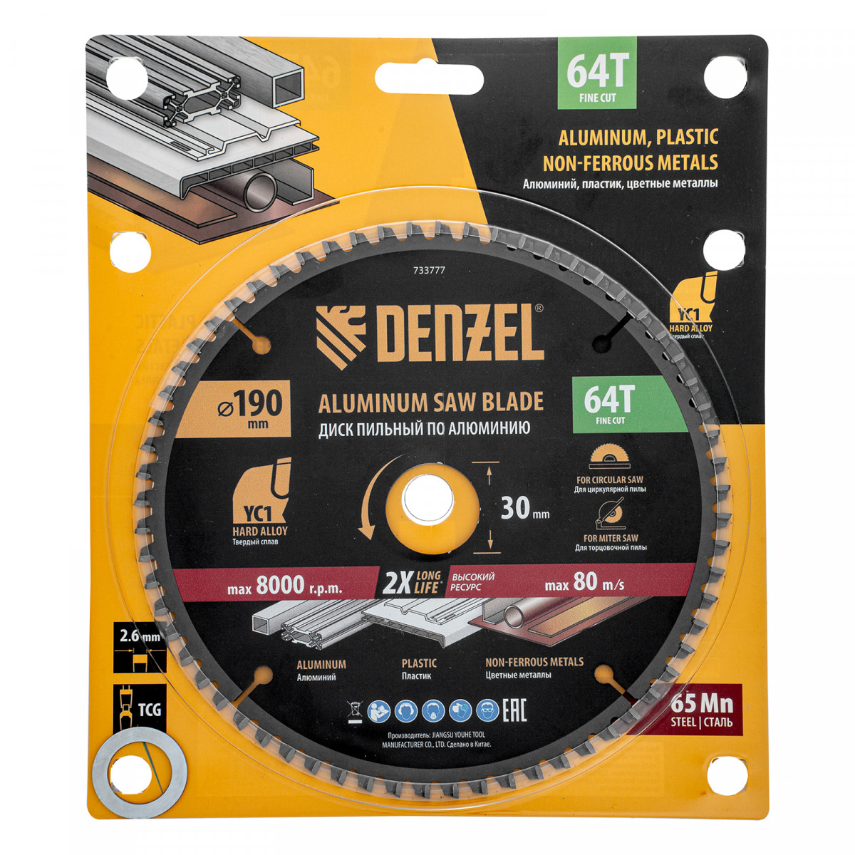 Пильный диск по алюминию ф190 х 30 мм, 64 зубьев Denzel