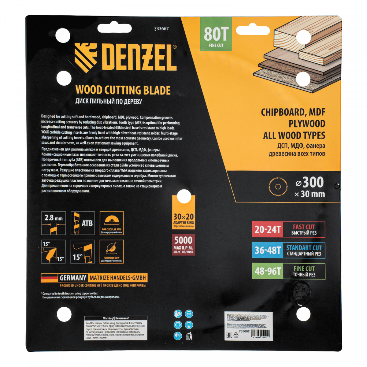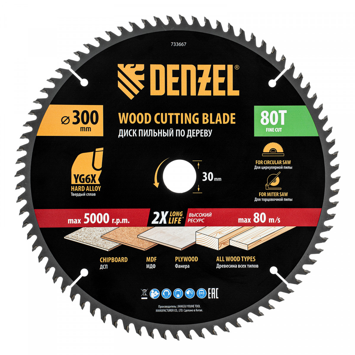 Пильный диск по дереву ф300 х 30 мм, 80 зубьев Denzel