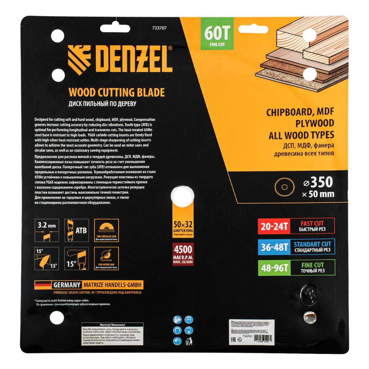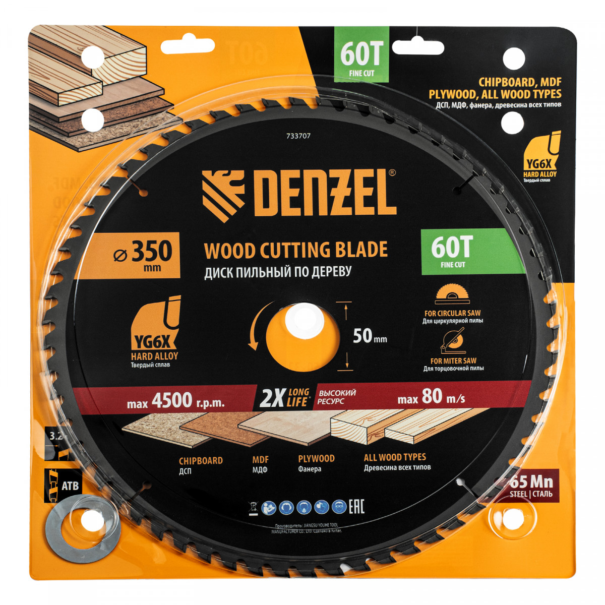 Пильный диск по дереву ф350 х 50 мм, 60 зубьев Denzel