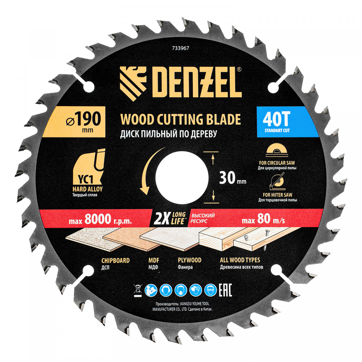 Пильный диск по дереву с гвоздями, ф190 х 30 мм, 40 зубов Denzel