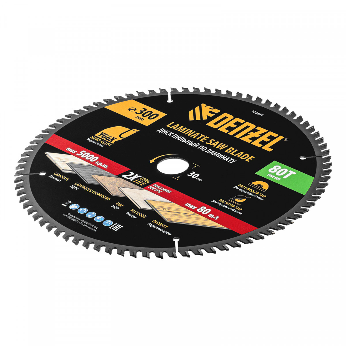 Пильный диск по ламинату ф300 х 30 мм, 80 зубьев Denzel