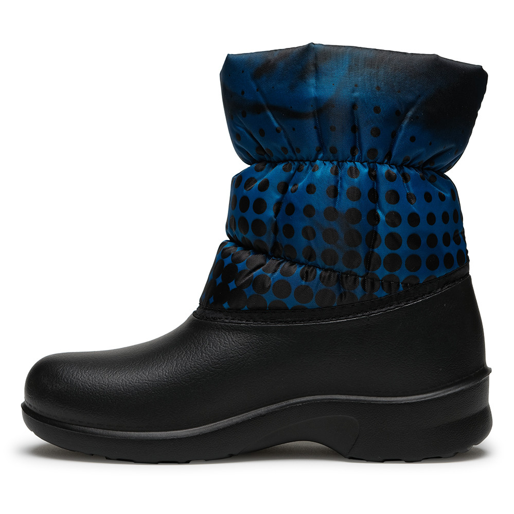 Полусапожки женские Дюна из зимней эластичной полимерной композиции EVA DU-Care. Верхняя часть выполнена из текстиля с водоотталкивающей пропиткой. Подкладка состоит из полиэфирного ворсового полотна, которое создаёт надёжный барьер для проникновения холодного воздуха. Воздушные пространства, которые образуются за счёт отстрочки с помощью резинки, создают барьер для проникновения холодного воздуха. Сноубутсы практичные, удобные и комфортные. Стильный авторский принт позволяет создать индивидуальный образ. Предназначены для повседневных прогулок в холодную погоду и для активного отдыха. Бережная стирка при температуре 30 градусов.