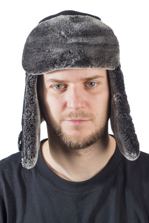 Шапка ушанка зимняя Авиатор, кож. зам черныйй Хольстер
