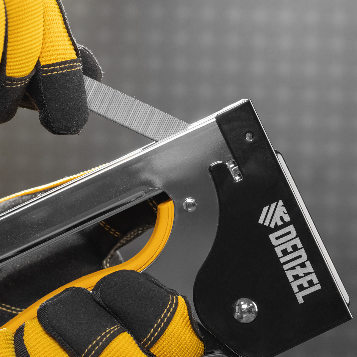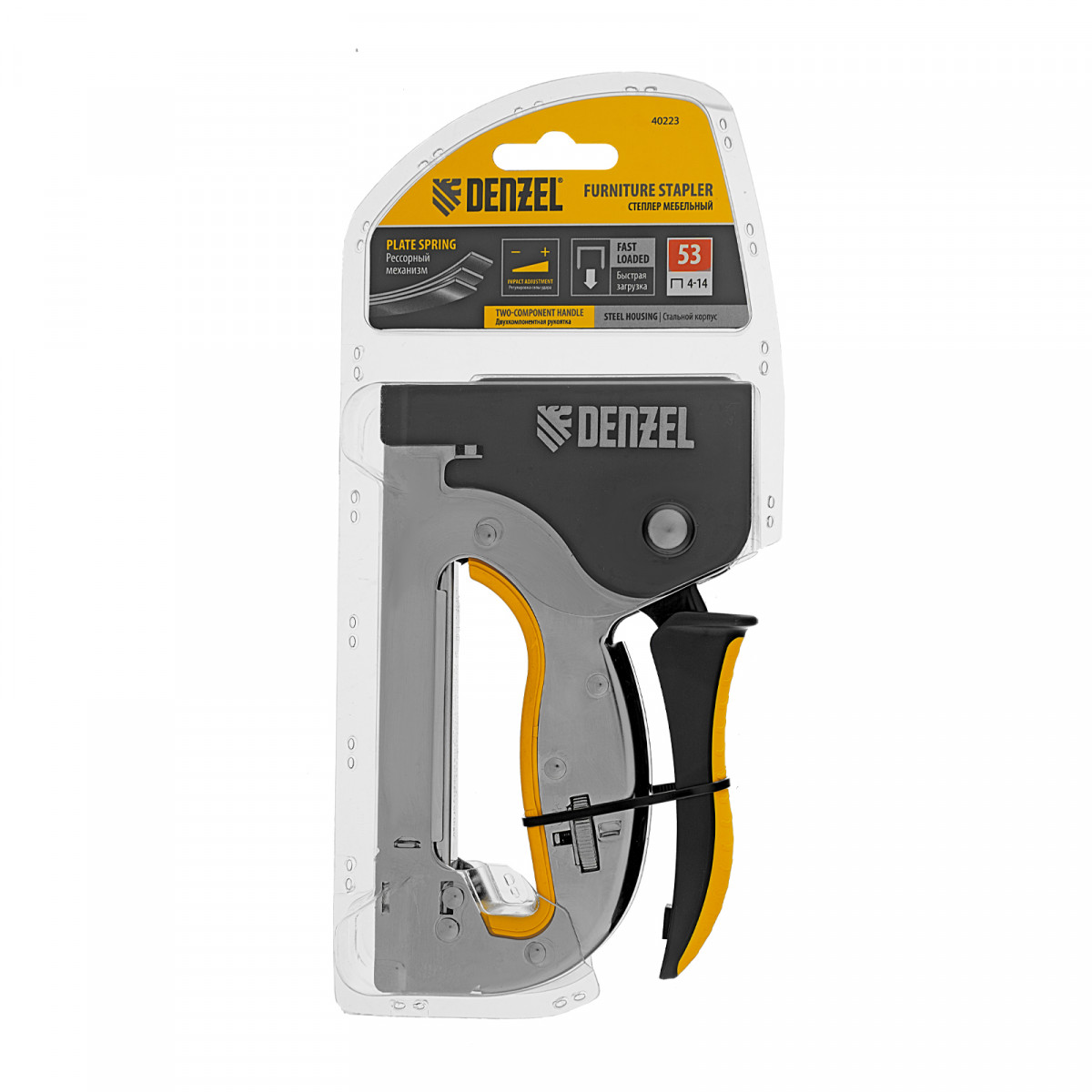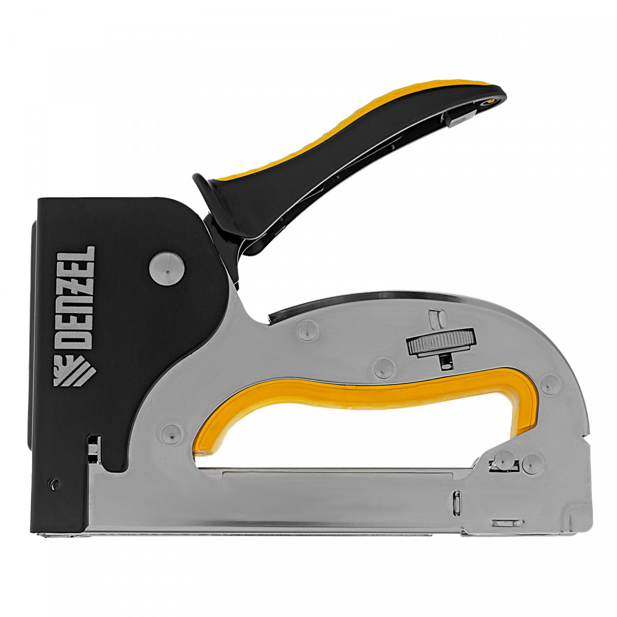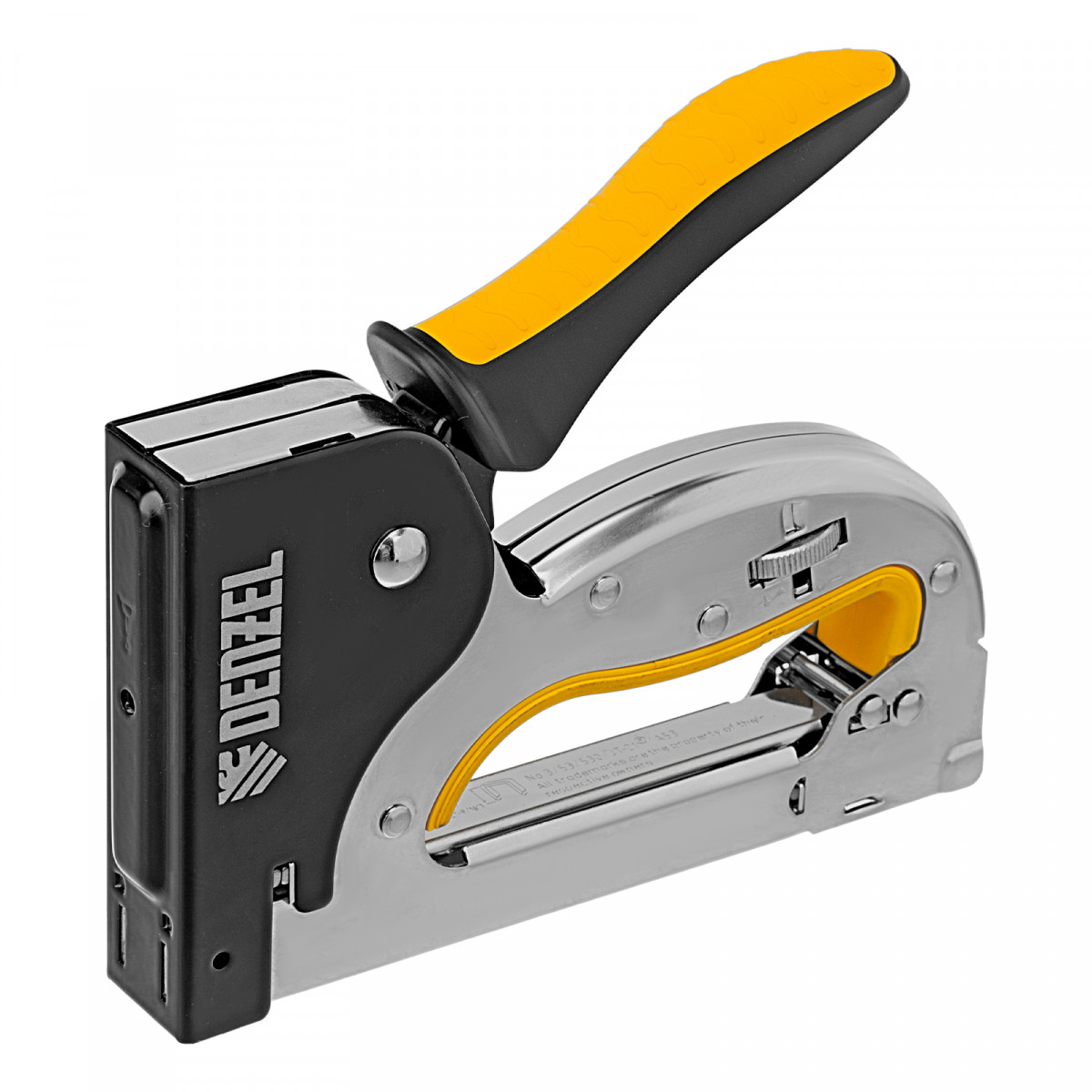 Степлер металл., скобы в комплекте, плавная регулировка удара, 2К рукоятка, тип 53, 4-14 мм Denzel
