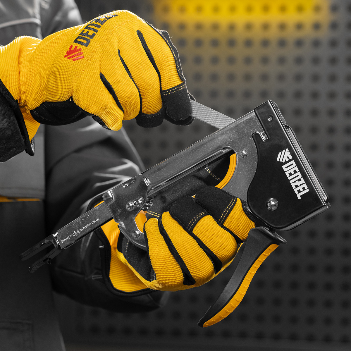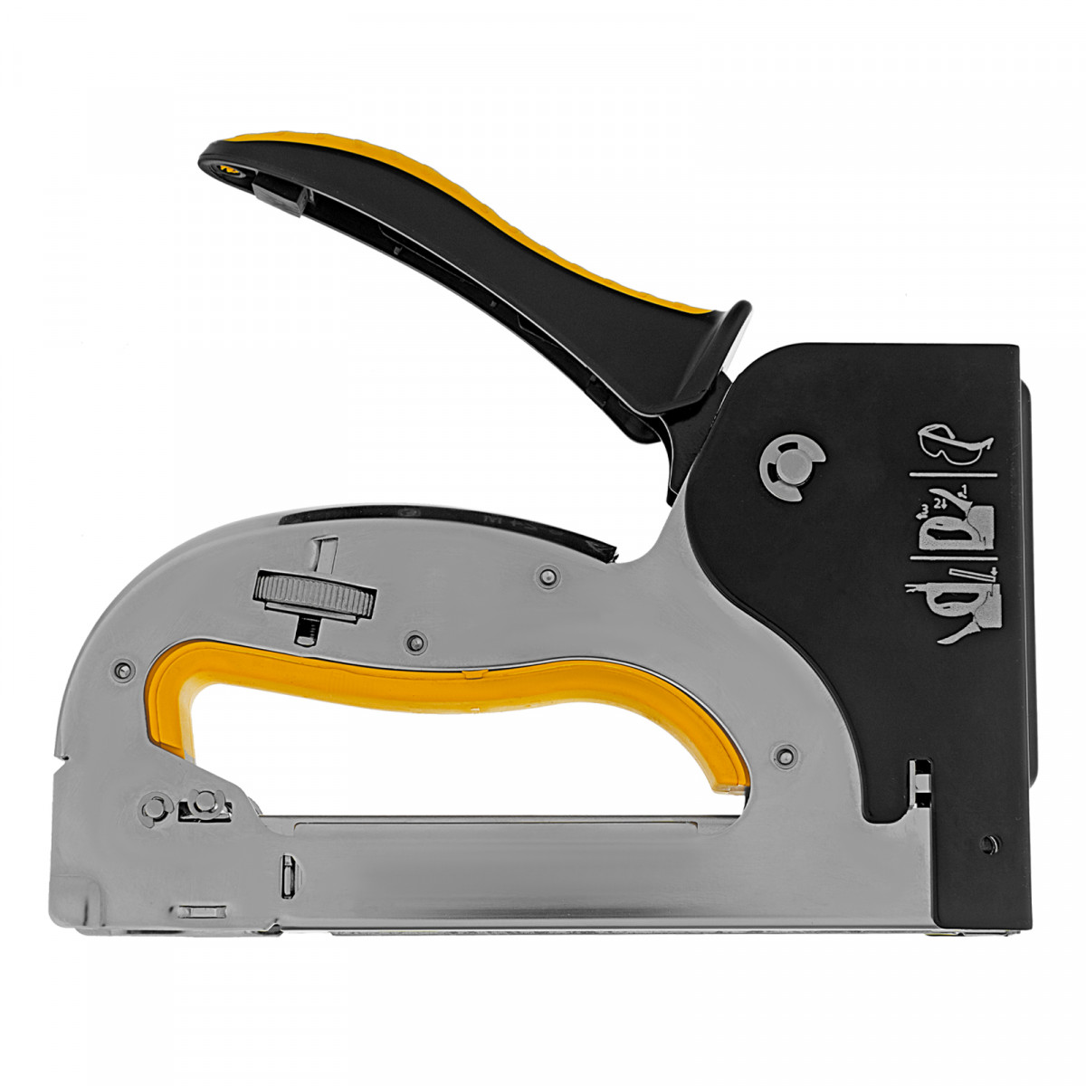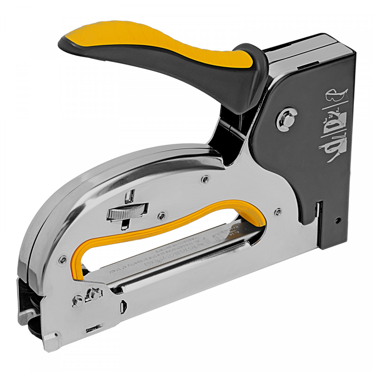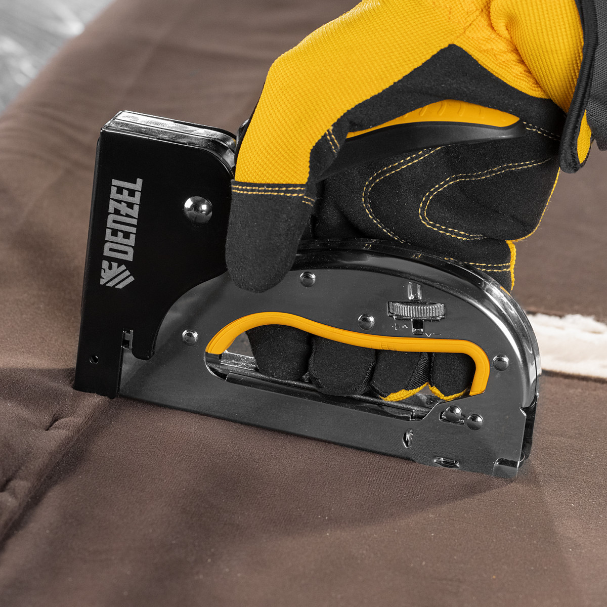 Степлер металл., скобы в комплекте, плавная регулировка удара, 2К рукоятка, тип 53, 4-14 мм Denzel