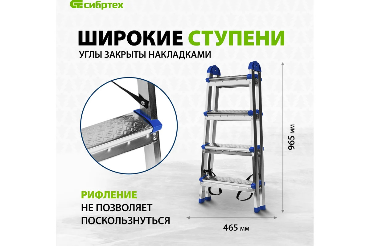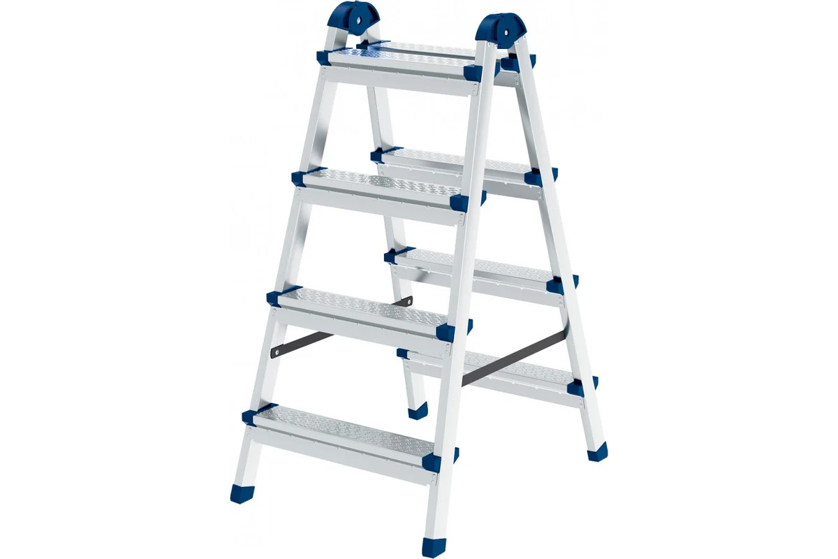 Стремянка двухсторонняя 4 ст., сталь профиль, стальные ступени, Россия// Сибртех