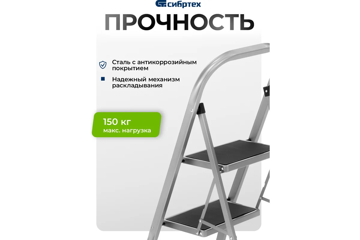 Стремянка стальная 2 ступени с резиновыми ковриками Сибртех