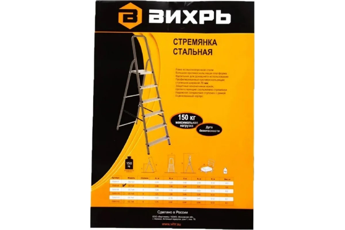 Стремянка стальная 4 ступени Вихрь