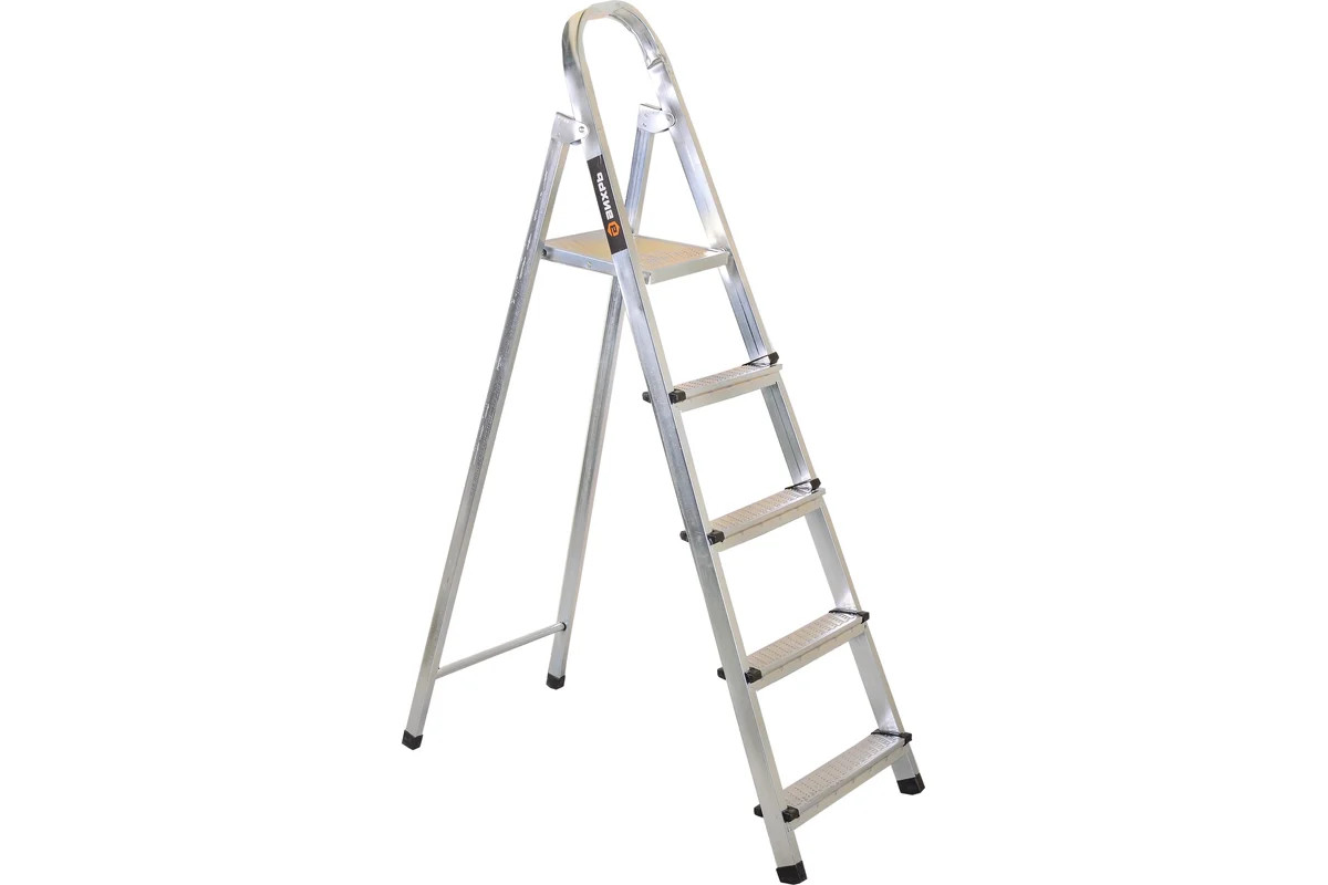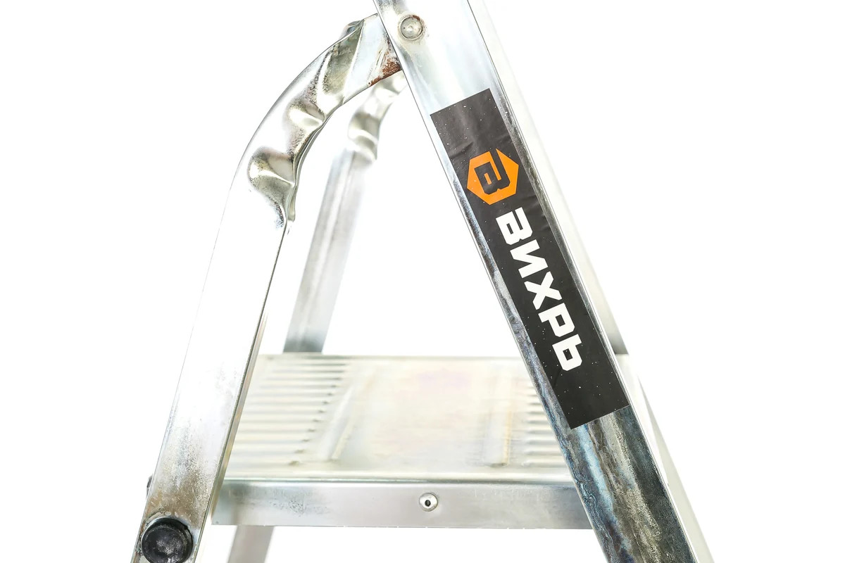 Широкие рифленые ступеньки обеспечивают безопасное и удобное расположение ног при работе на стремянке.