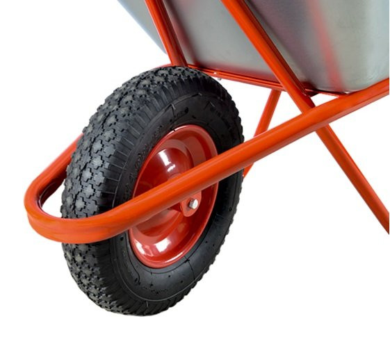 Специальная опора перед колесом для удобства выгрузки содержимого и защиты колеса от ударов. Крепкая металлическая рама. Повышенная маневренность благодаря одноколесной конструкции.