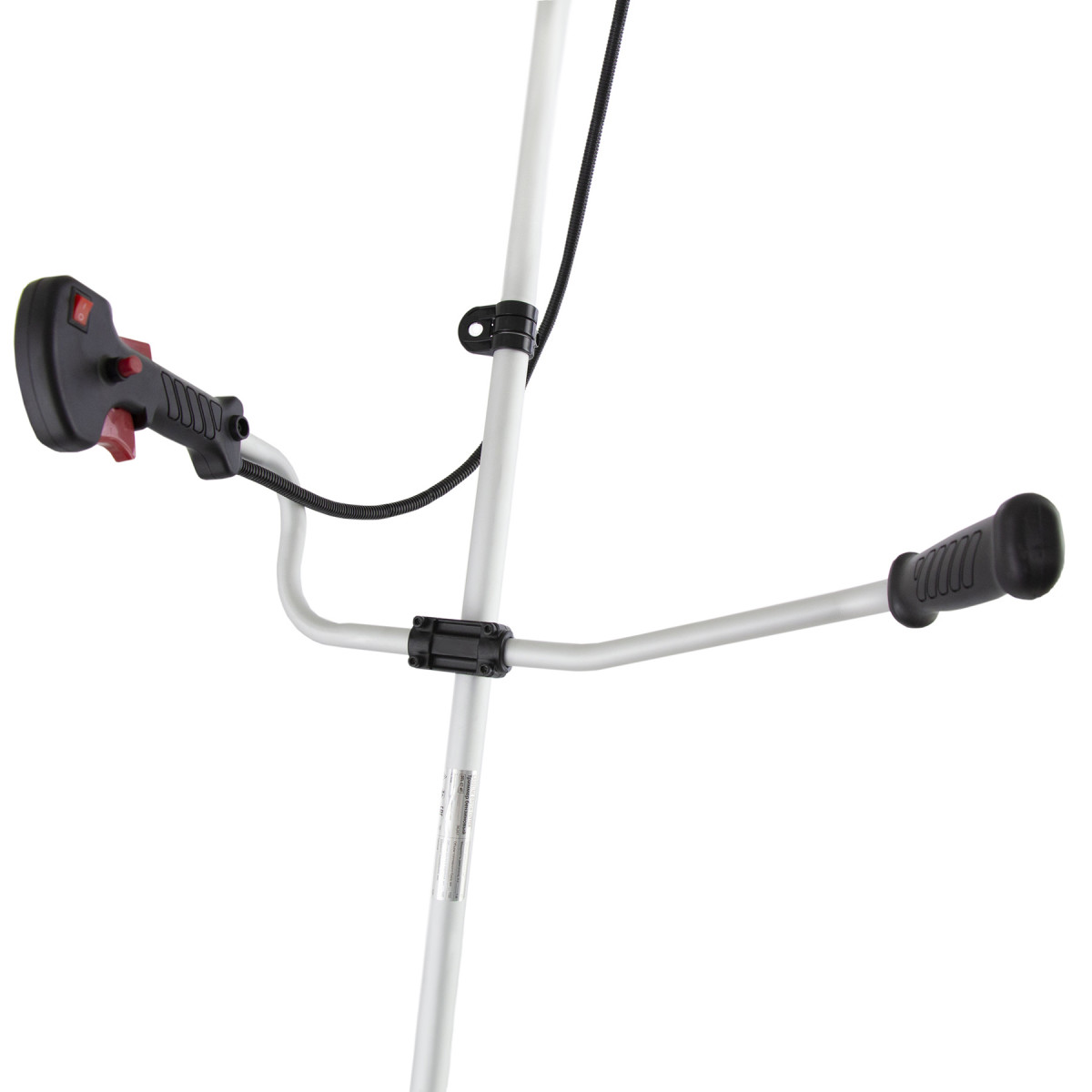 - Безопасная работа — защитный кожух закрывает режущую часть, поэтому в сторону пользователя не отлетают ветки и камни.