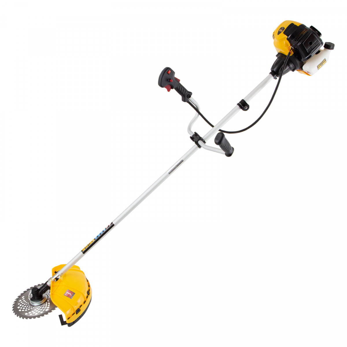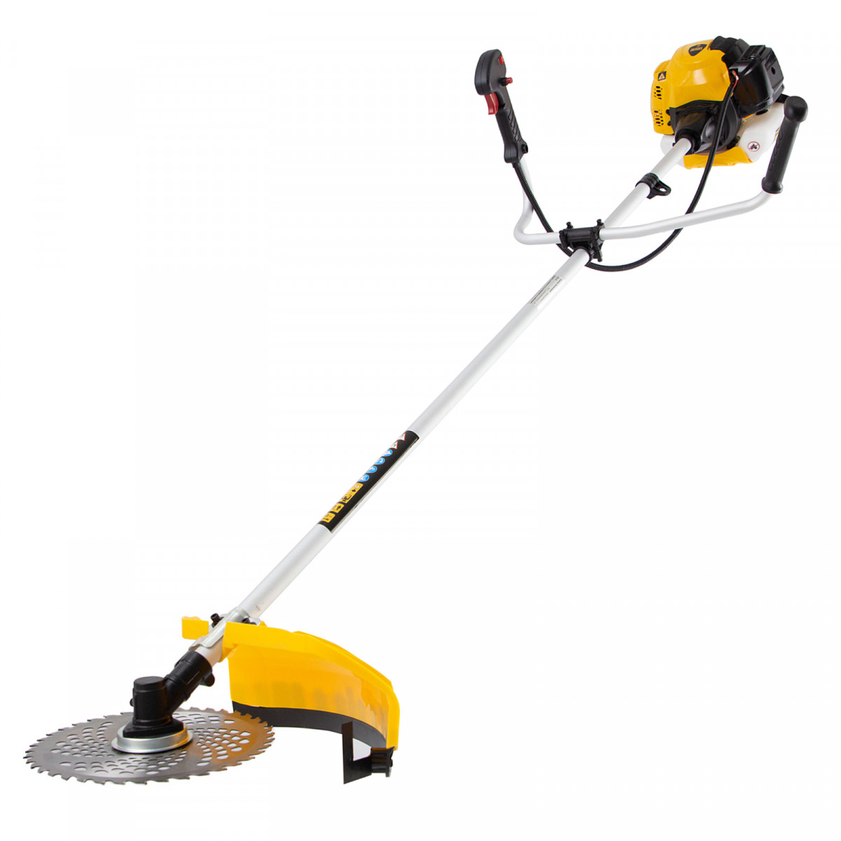 Бензиновый триммер Denzel DTL-33 96261 с объемом двигателя 33 см3 и неразъемной штангой подходит как для частичного подравнивания газона, так и скашивания травы всех типов, в том числе с жесткими древовидными стеблями (полыни, крапивы, лебеды, борщевика). Также эффективен для срезания кустарника и молодых побегов деревьев с диаметром стволов до 10 мм. Два режущих инструмента — леска и пильный диск — работают на скорости 9500 об/мин и обеспечивают ширину скашивания 42 и 25,5 см соответственно. Двигатель мощностью 1,8 л.с. экономично потребляет топливо, поэтому часто заправлять бак не придется. Триммер не требует подключения к стационарному источнику питания и может использоваться в самом отдаленном уголке дачного участка.