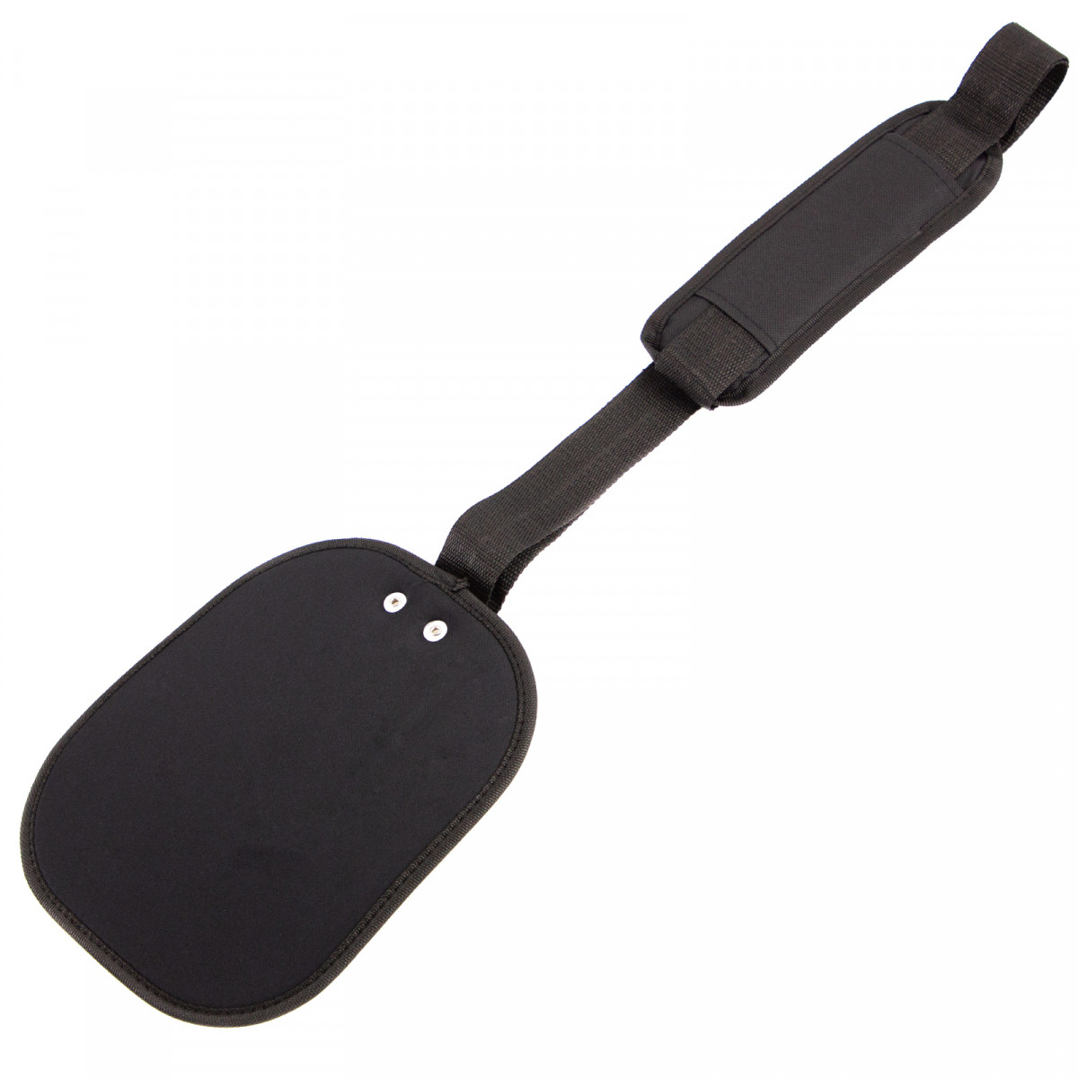 - Комфортная работа — плечевой ремень снижает нагрузку на руки, защита бедра предотвращает появление синяков от ударов штангой.