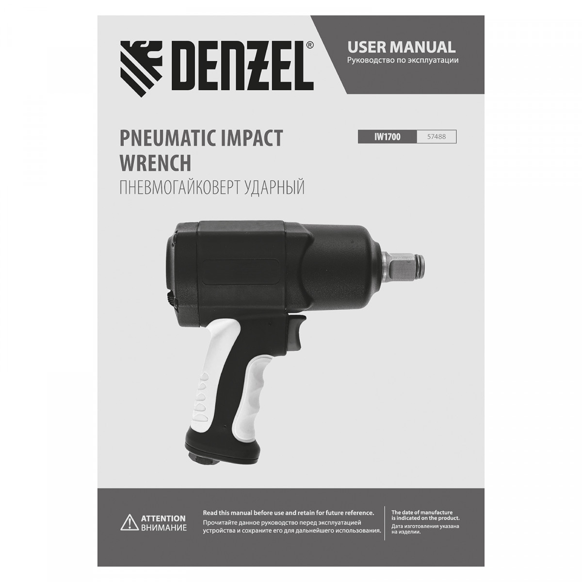Ударный пневмогайковерт IW1700, 3/4", 8500 об/мин, 1700 Нм Denzel
