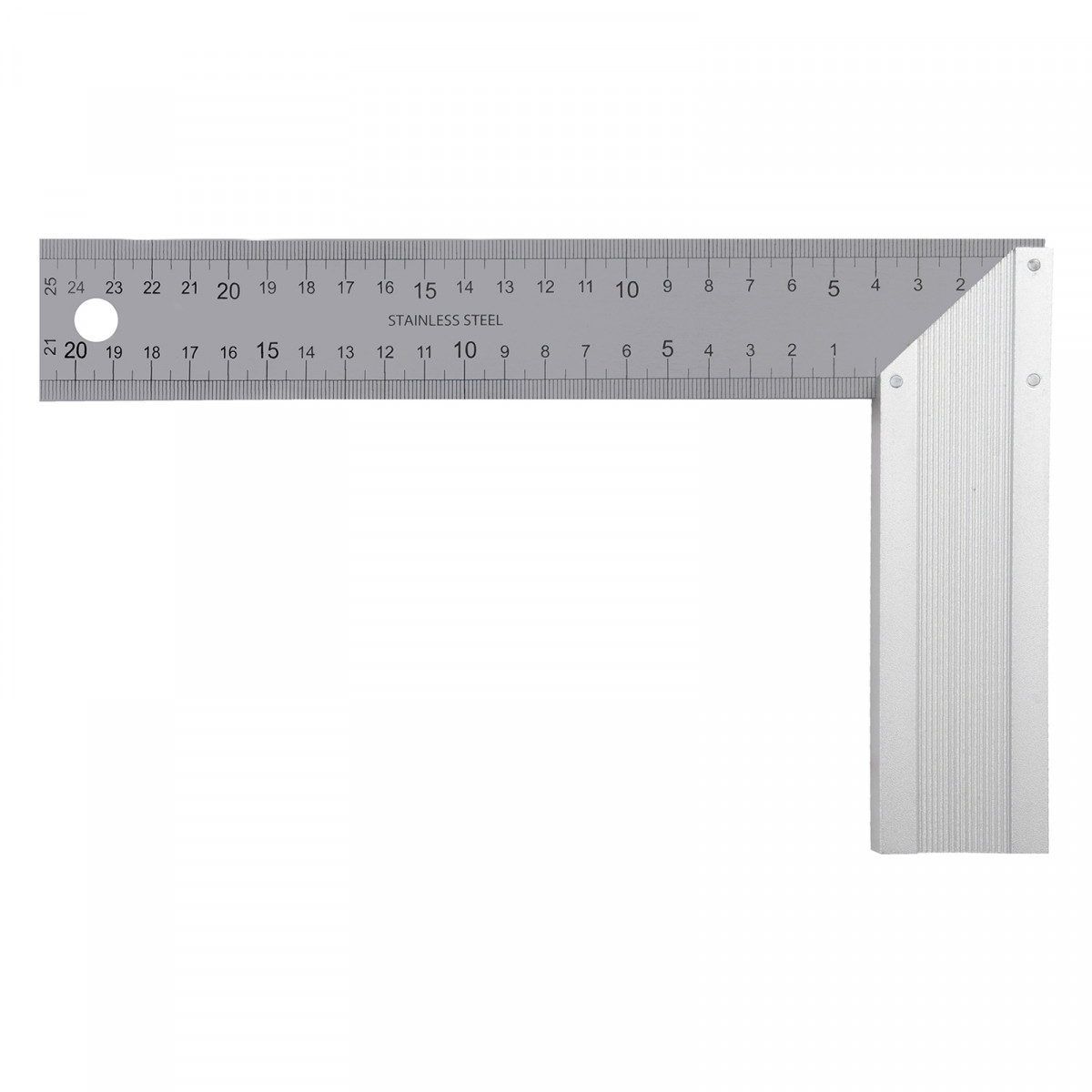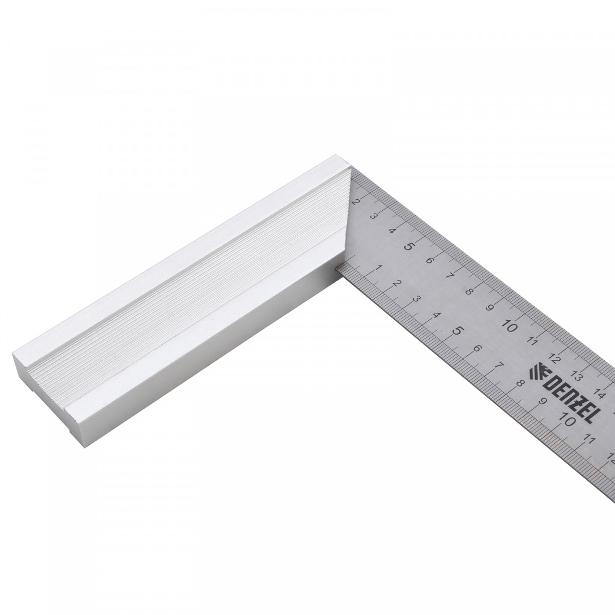 Угольник стальной 250 мм, нержавеющая сталь, градуировка, алюминиевое основание Denzel