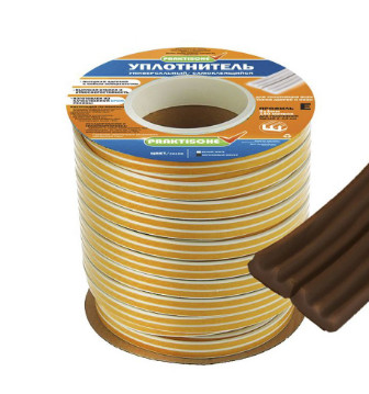 Уплотнитель самоклеящийся PRAKTISCHE HOME 9х4мм Е-150 м коричневый ЦЕНА ЗА 1 п.м. в 1 слой