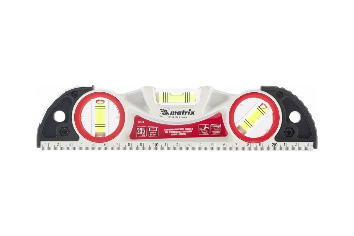 Уровень 235 мм 3 глазка алюминиевый фрезерованный МАТRIХ
