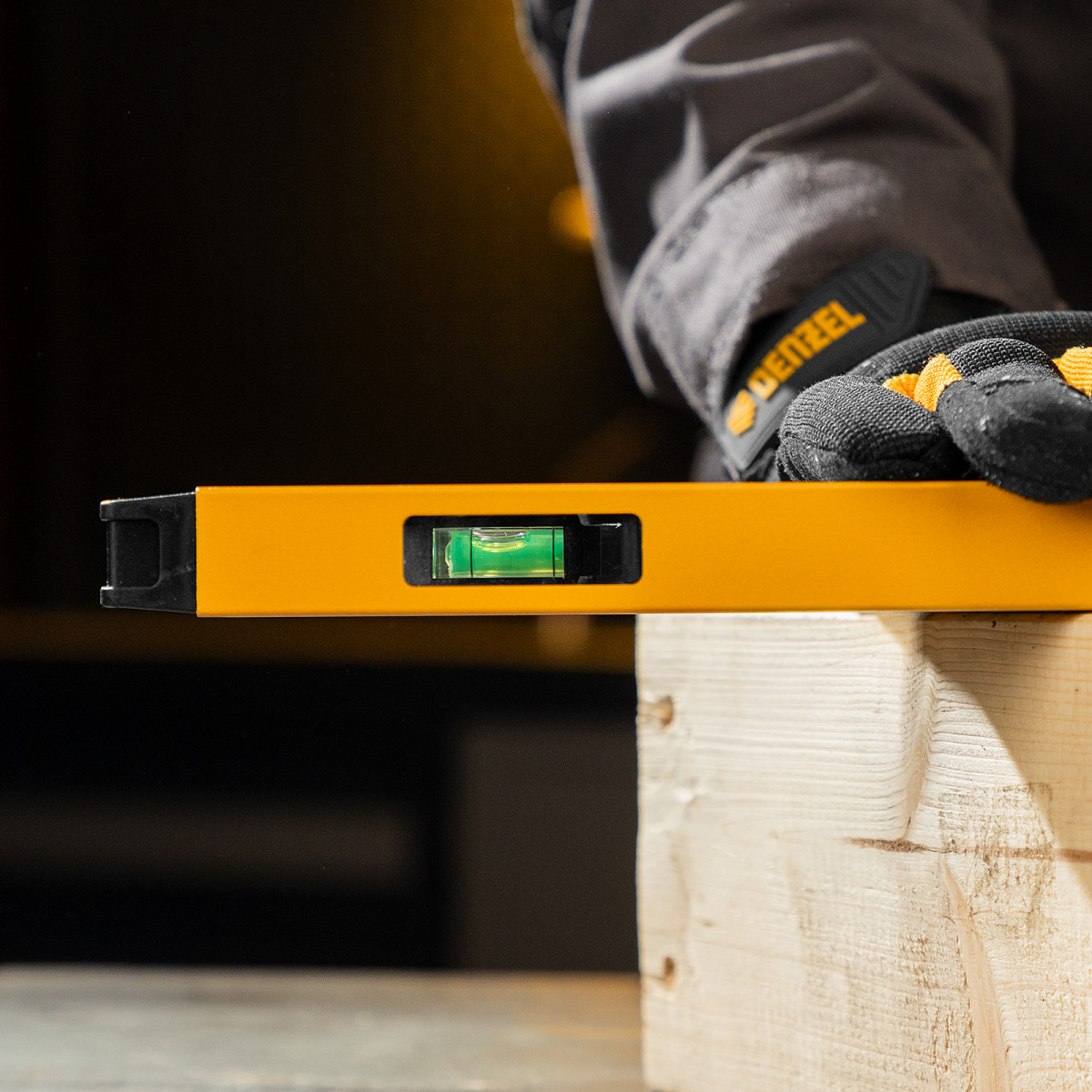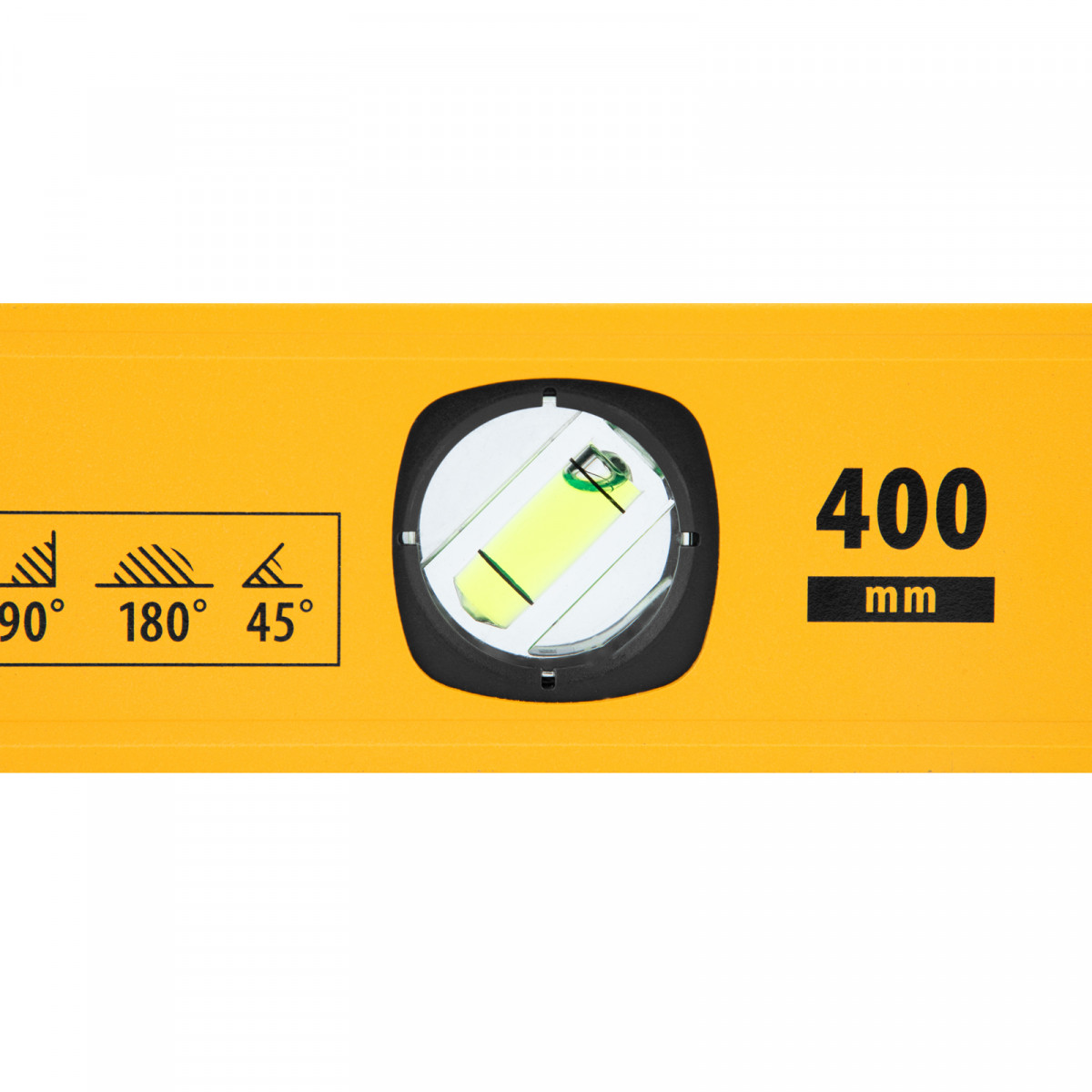 Алюминиевый фрезерованный уровень Denzel 33690 длиной 400 мм, с магнитом и 3 глазками, из которых 1 зеркальный, предназначен для контроля отклонений от горизонтальной, вертикальной и поверхности под углом 45° с точностью 0,5 мм/м. 3 пузырьковые камеры 90°, 180° и 45° позволяют быстро проверить правильность разметки. Инструмент незаменим при проведении строительных, ремонтных, сантехнических работ.