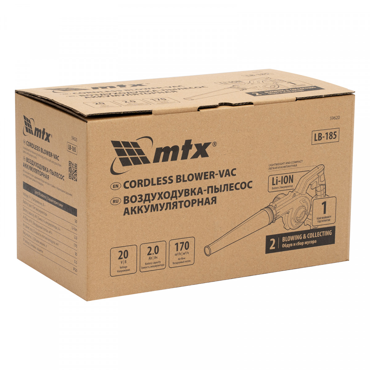 Воздуходувка-пылесос акк. портативная, LB-185, 35 м/с, 170 м3/ч, Li-Ion, 20 В MTX